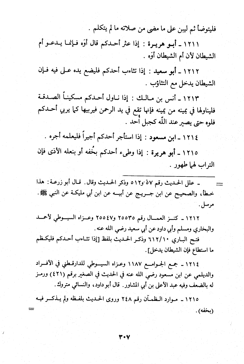 إِذا عثر أحدكُم قَالَ أوه فَإِنَّمَا يَدْعُو أم الشَّيْطَان لِأَن أم الشَّيْطَان أوه