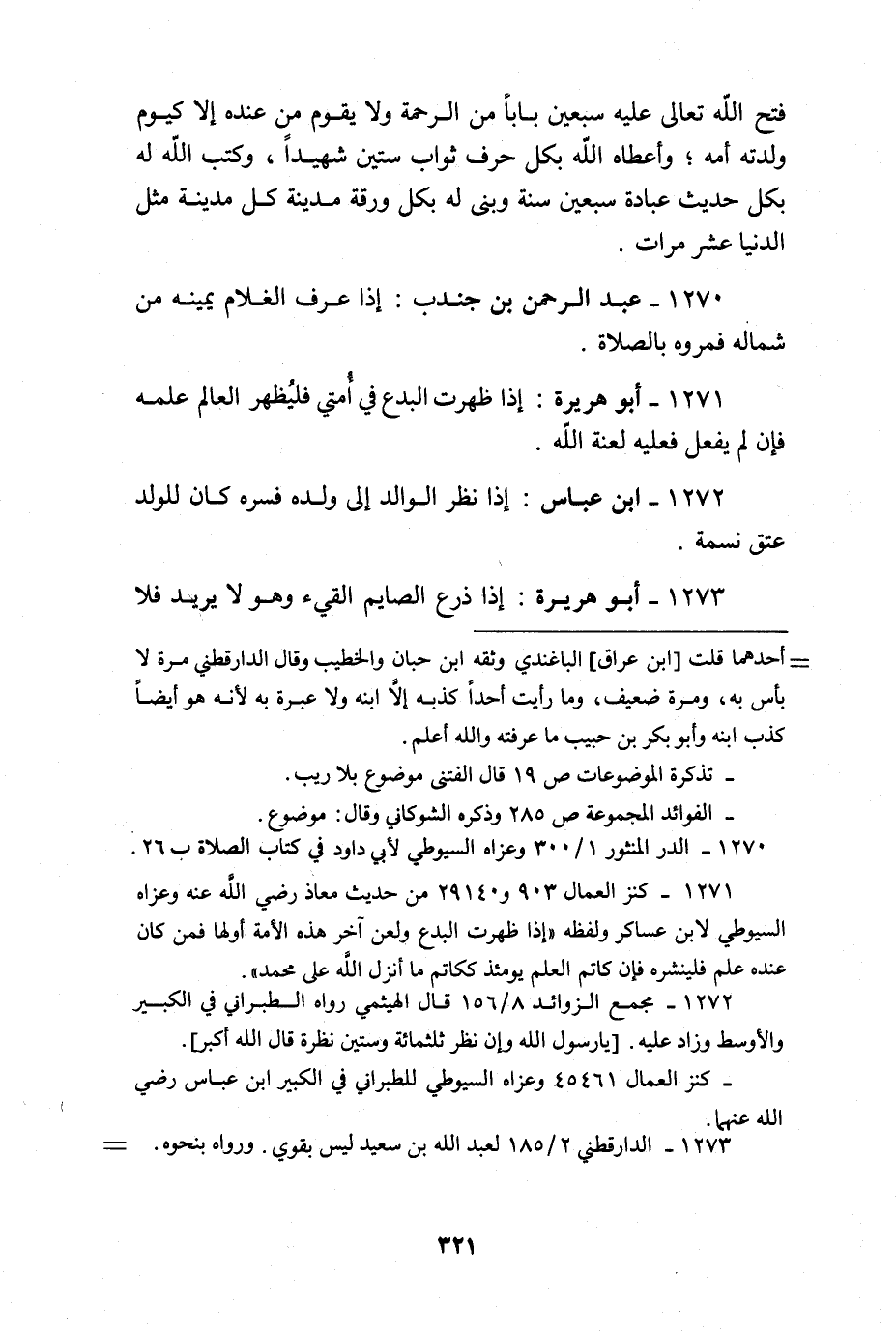 إِذا ظَهرت الْبدع فِي أمتِي فليظهر الْعَالم علمه فَإِن لم يفعل فَعَلَيهِ لعنة الله