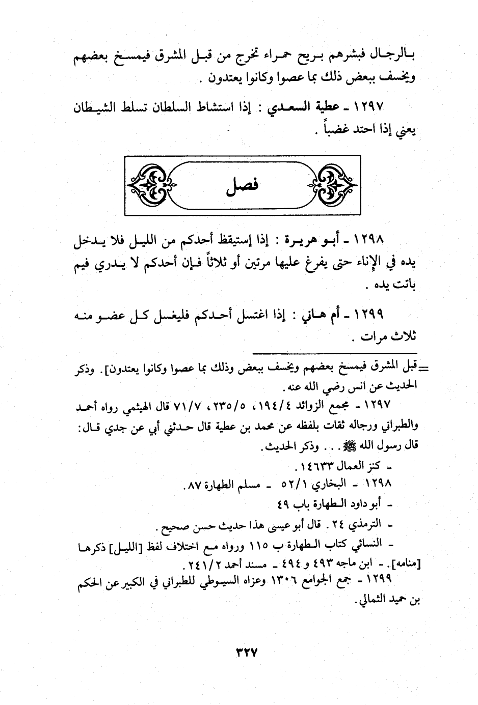 إِذا اسْتَيْقَظَ أحدكُم من اللَّيْل فَلَا يدْخل يَده فِي الْإِنَاء حَتَّى يفرغ عَلَيْهَا مرَّتَيْنِ أَو ثَلَاثًا فَإِن أحدكُم لَا يدْرِي فيمَ باتت يَده