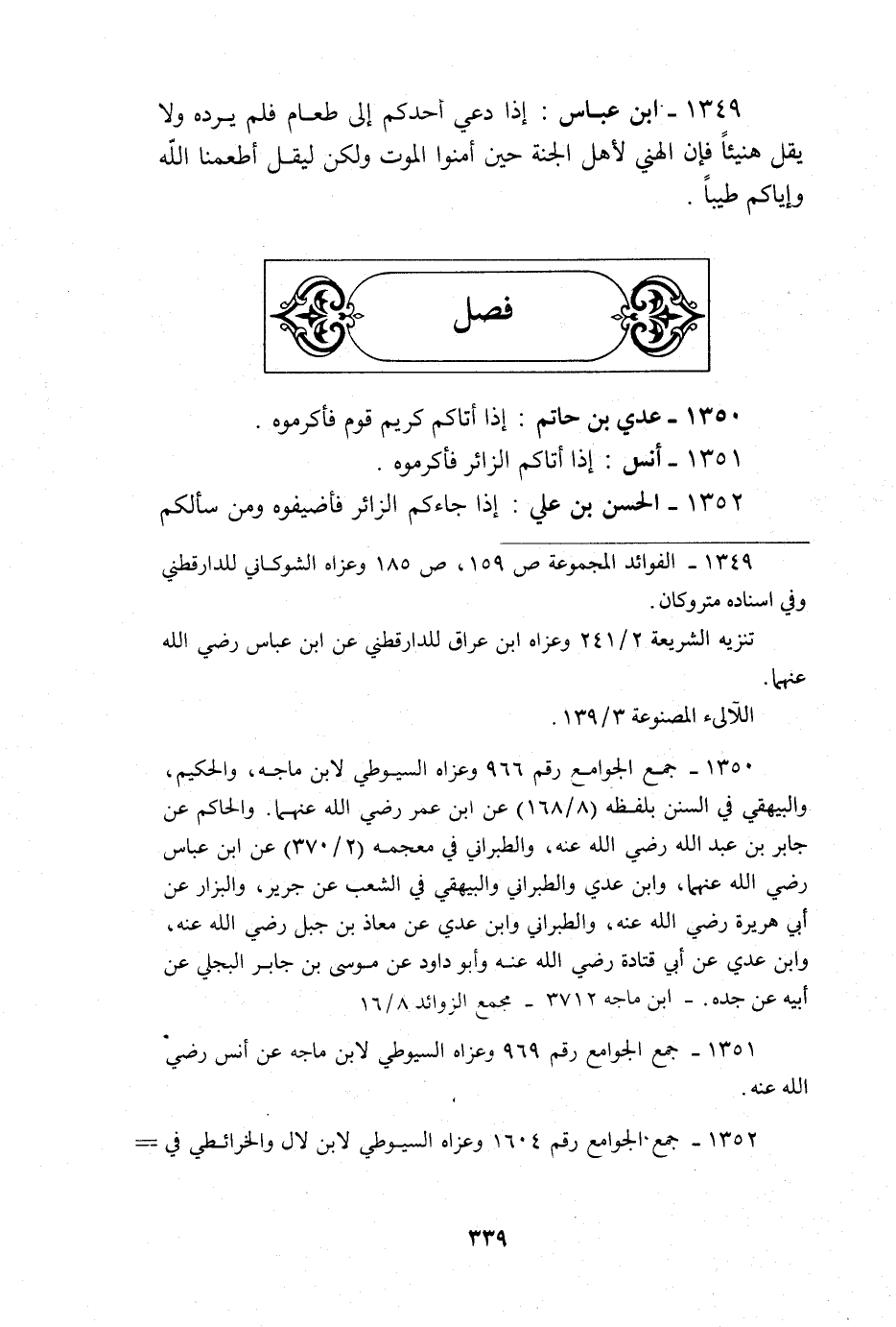 إِذا جَاءَكُم الزائر فأضيفوه وَمن سألكم