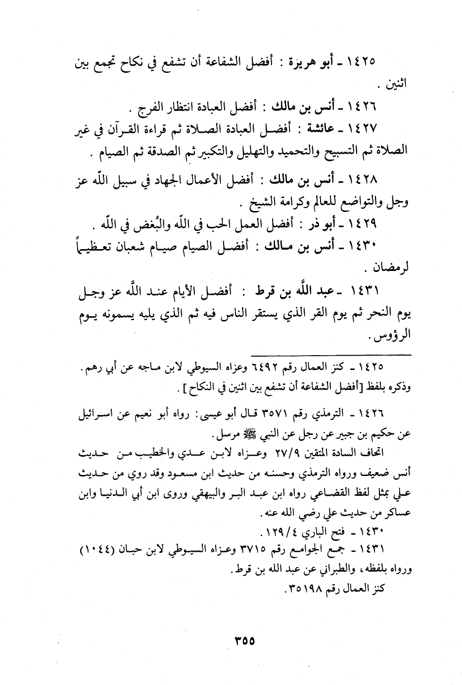 أفضل الْعِبَادَة الصَّلَاة ثمَّ قِرَاءَة الْقُرْآن فِي غير الصَّلَاة ثمَّ التَّسْبِيح والتحميد والتهليل وَالتَّكْبِير ثمَّ الصَّدَقَة ثمَّ الصّيام