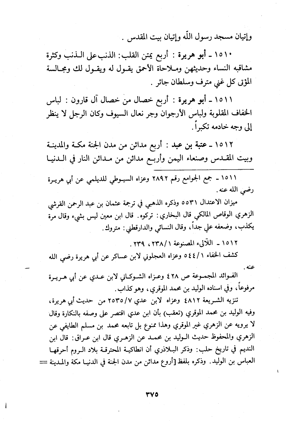 أَربع خِصَال من خِصَال آل قاروق لِبَاس الْخفاف المقلوبة ولباس الأرجوان وجر نعال السيوف وَكَانَ الرجل لَا ينظر إِلَى وَجه خادمه تكبرا