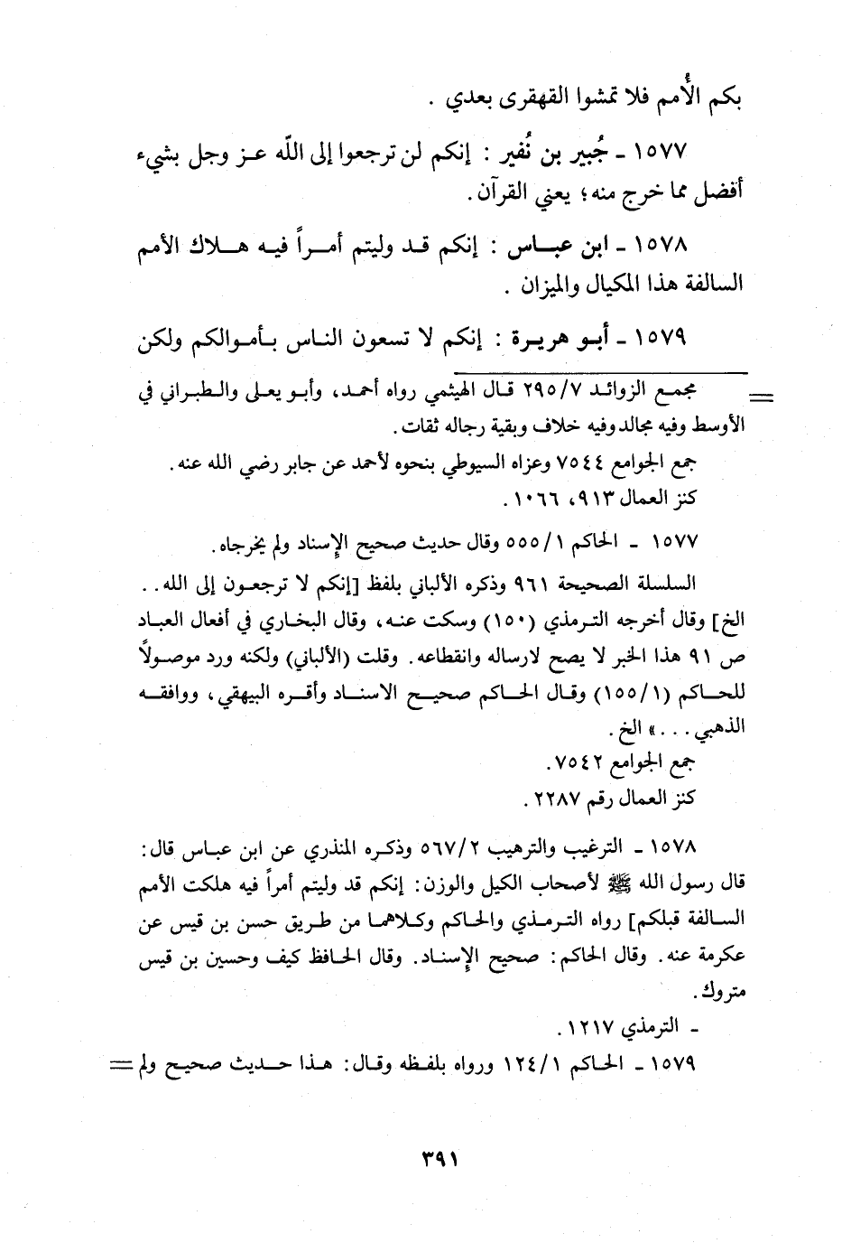 إِنَّكُم قد وليتم أمرا فِيهِ هَلَاك الْأُمَم السالفة هَذَا الْمِكْيَال وَالْمِيزَان