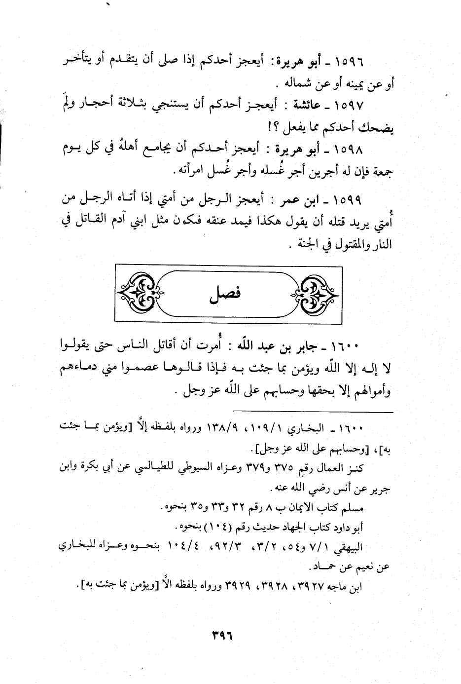 أَيعْجزُ الرجل من أمتِي إِذا أَتَاهُ الرجل من أمتِي يُرِيد قَتله أَن يَقُول هَكَذَا فيمد عُنُقه فَيكون مثل ابْني آدم الْقَاتِل فِي النَّار والمقتول فِي الْجنَّة