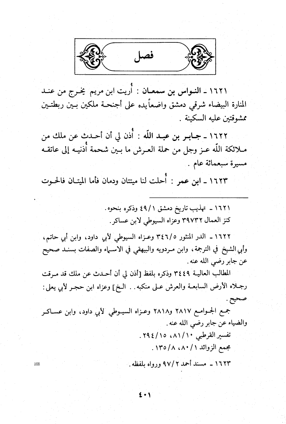 أذن لي أَن أحدث عَن ملك من مَلَائِكَة الله عز وَجل من حَملَة الْعَرْش مَا بَين شحمة أذنية إِلَى عَاتِقه مسيرَة سَبْعمِائة عَام
