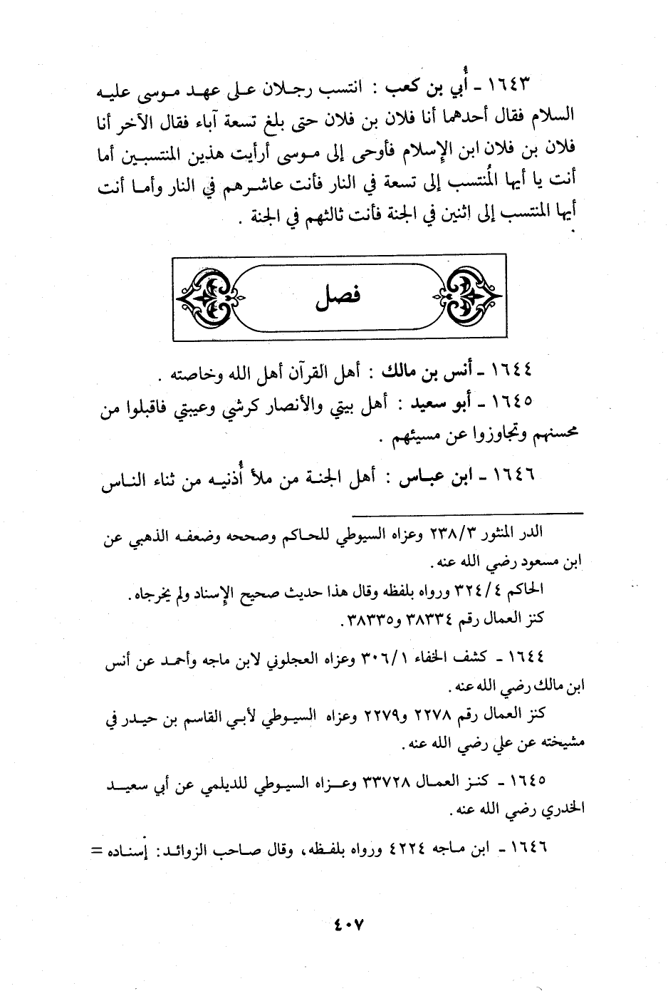 انتسب رجلَانِ على عهد مُوسَى عَلَيْهِ السَّلَام فَقَالَ أَحدهمَا أَنا فلَان بن فلَان حَتَّى بلغ تِسْعَة آبَاء فَقَالَ الآخر أَنا فلَان بن فلَان ابْن الْإِسْلَام فَأوحى إِلَى مُوسَى أَرَأَيْت هذَيْن المنتسبين أما أَنْت يَا أَيهَا المنتسب إِلَى تِسْعَة فِي النَّار فَأَنت عاشرهم فِي النَّار وَأما أَنْت أَيهَا المنتسب إِلَى اثْنَيْنِ فِي الْجنَّة فَأَنت ثالثهم فِي الْجنَّة