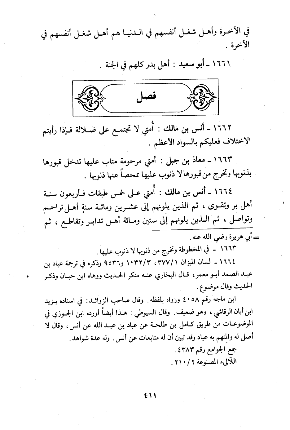 أمتِي على خمس طَبَقَات فأربعون سنة أهل بر وتقوى ثمَّ الَّذين يَلُونَهُمْ إِلَى عشْرين وَمِائَة سنة أهل تراحم وتواصل ثمَّ الَّذين يَلُونَهُمْ إِلَى سِتِّينَ وَمِائَة أهل تدابر وتقاطع ثمَّ