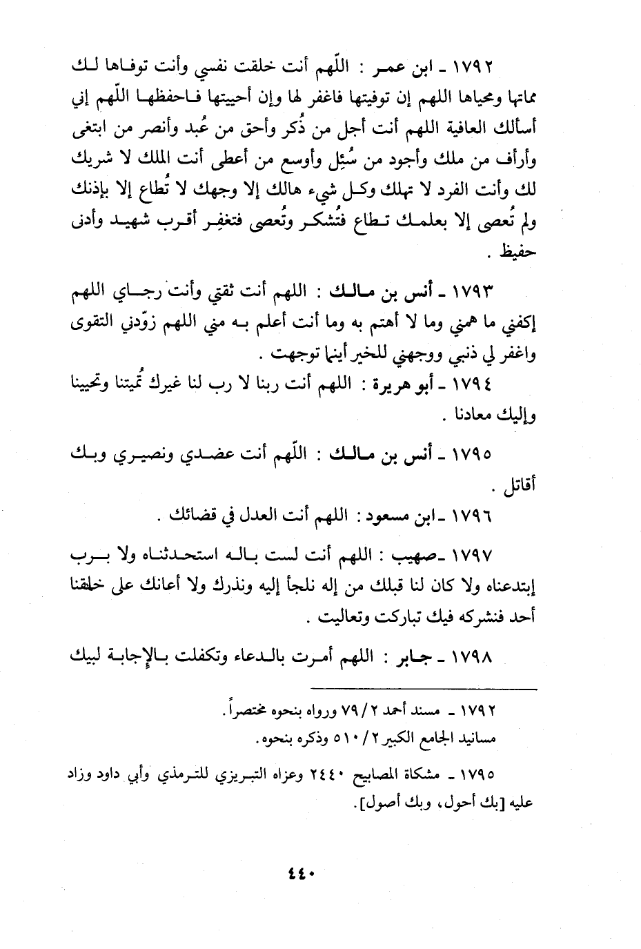 اللَّهُمَّ أَنْت لست باله استحدثناه وَلَا بِرَبّ إبتدعناه وَلَا كَانَ لنا قبلك من إِلَه نلجأ إِلَيْهِ ونذرك وَلَا أعانك على خلقنَا أحد فنشركه فِيك تَبَارَكت وَتَعَالَيْت