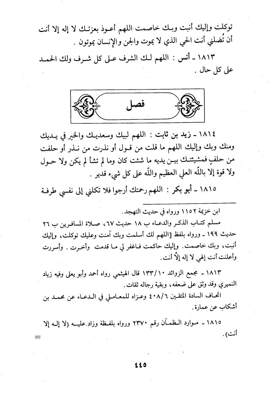 توكلت وَإِلَيْك أنبت وَبِك خَاصَمت اللَّهُمَّ أعوذ بعزتك لَا إِلَه إِلَّا أَنْت أَن تضلني أَنْت الْحَيّ الَّذِي لَا يَمُوت وَالْجِنّ وَالْإِنْسَان يموتون