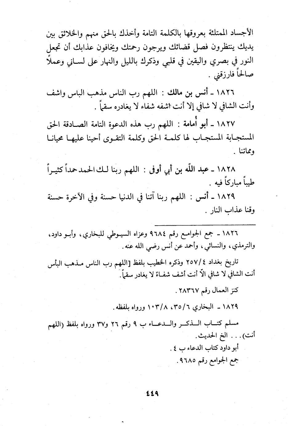 اللَّهُمَّ رب النَّاس مَذْهَب الباس واشف وَأَنت الشافي لَا شافي إِلَّا أَنْت اشفه شِفَاء لَا يغادره سقما