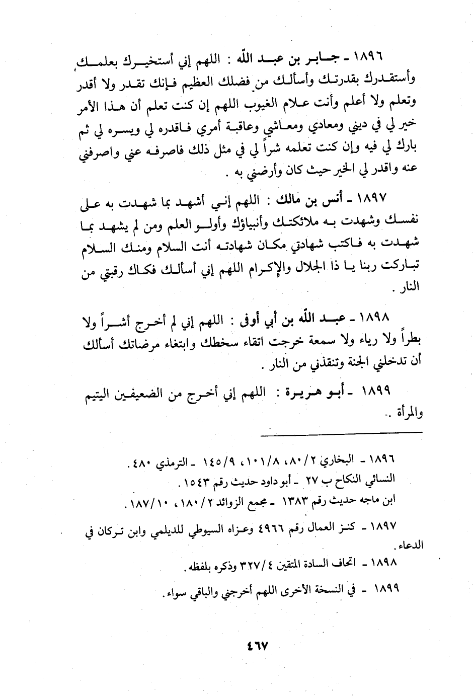 اللَّهُمَّ إِنِّي أشهد بِمَا شهِدت بِهِ على نَفسك وَشهِدت بِهِ ملائكتك وأنبياؤك وأولو الْعلم وَمن لم يشْهد بِمَا شهِدت بِهِ فَاكْتُبْ شهادتي مَكَان شَهَادَته أَنْت السَّلَام ومنك السَّلَام تَبَارَكت رَبنَا يَا ذَا الْجلَال وَالْإِكْرَام اللَّهُمَّ إِنِّي أَسأَلك فكاك رقبتي من النَّار