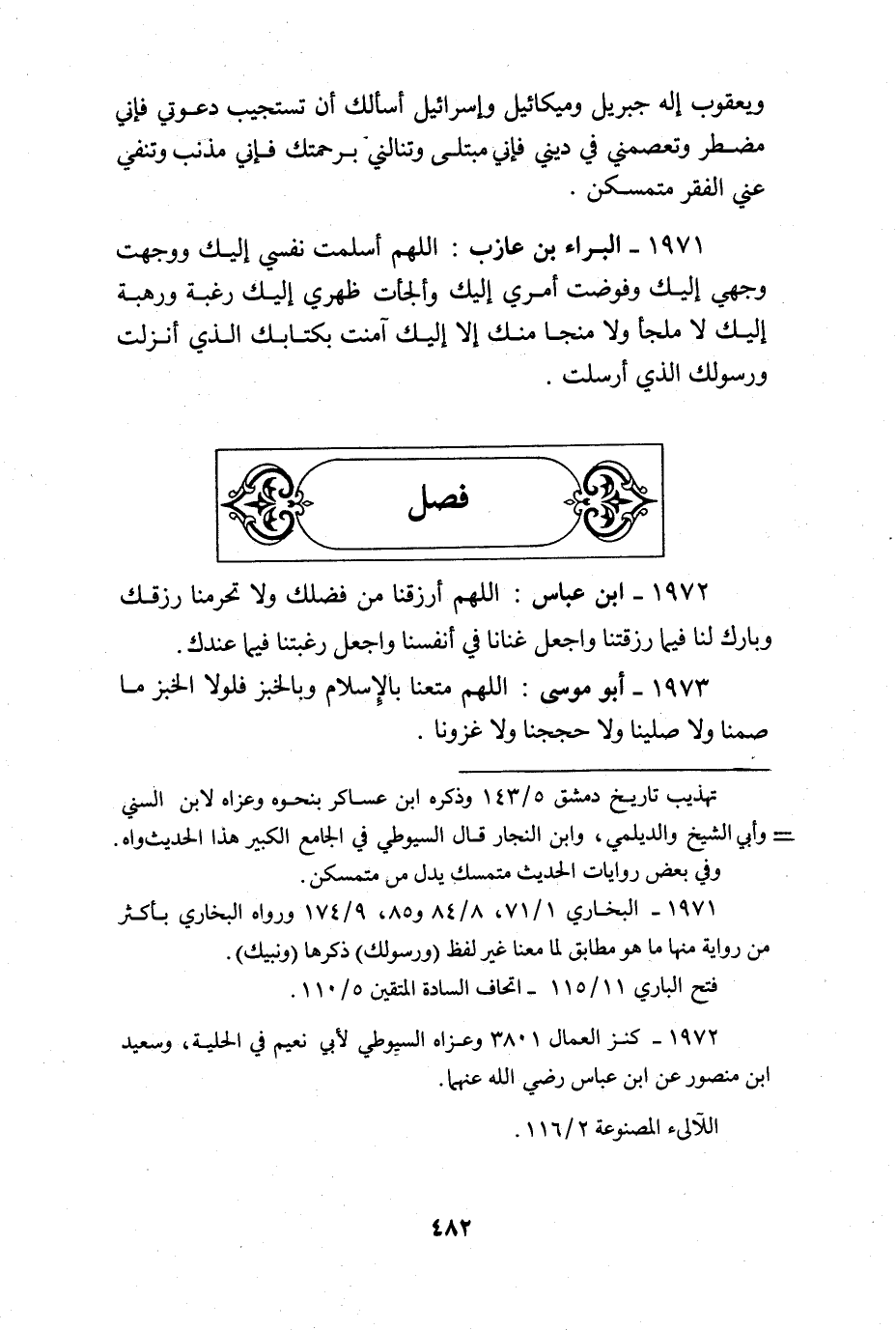 وَيَعْقُوب إِلَه جِبْرِيل وَمِيكَائِيل وإسرافيل أَسأَلك أَن تَسْتَجِيب دَعْوَتِي فَإِنِّي مُضْطَر وتعصمني فِي ديني فَإِنِّي مبتلى وتنالني بِرَحْمَتك فَإِنِّي مذنب وتنفي عني الْفقر متمسكن