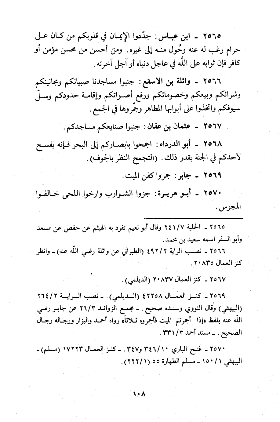 جَنبُوا مَسَاجِدنَا صِبْيَانكُمْ وَمَجَانِينكُمْ وشرائكم وَبَيْعكُمْ وَخُصُومَاتكُمْ وَرفع أَصْوَاتكُم وَإِقَامَة حُدُودكُمْ وسل سُيُوفكُمْ وَاتَّخذُوا على أَبْوَابهَا الْمَطَاهِر وَجَمِّرُوهَا فِي الْجمع