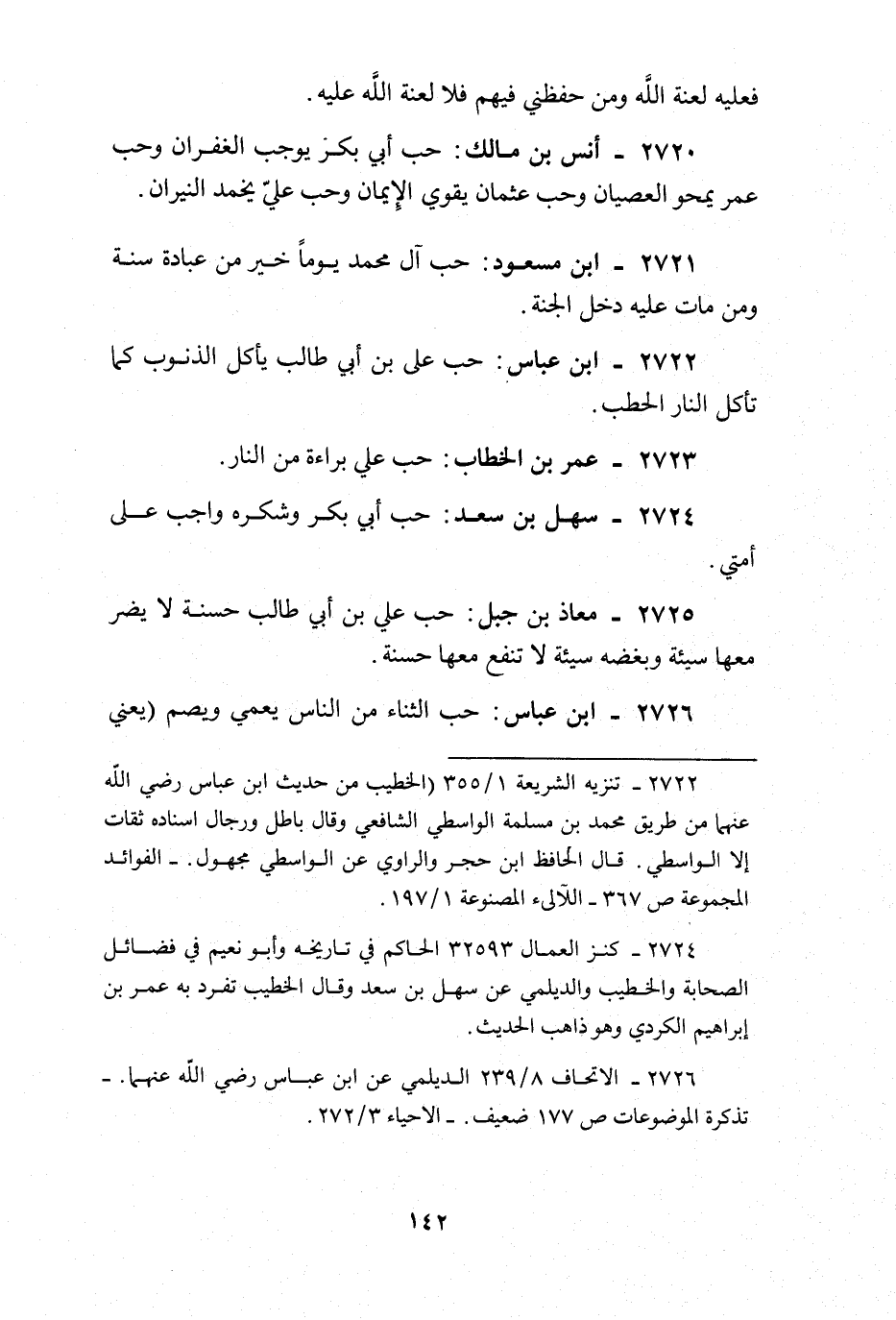 2720 - أنس بن مَالك حب أبي بكر يُوجب الغفران وَحب عمر يمحو الْعِصْيَان وَحب عُثْمَان يُقَوي الْإِيمَان وَحب عَليّ يخمد النيرَان
