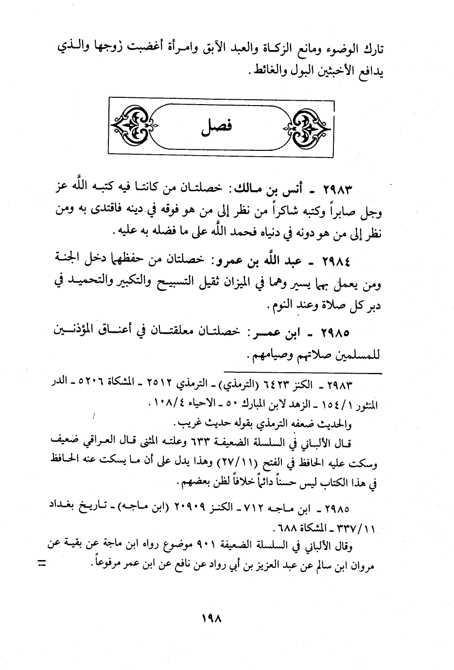 خصلتان من كَانَتَا فِيهِ كتبه الله عز وَجل صَابِرًا وَكتبه شاكرا من نظر إِلَى من هُوَ فَوْقه فِي دينه فاقتدى بِهِ وَمن نظر إِلَى من هُوَ دونه فِي دُنْيَاهُ فَحَمدَ الله على مَا فَضله بِهِ عَلَيْهِ