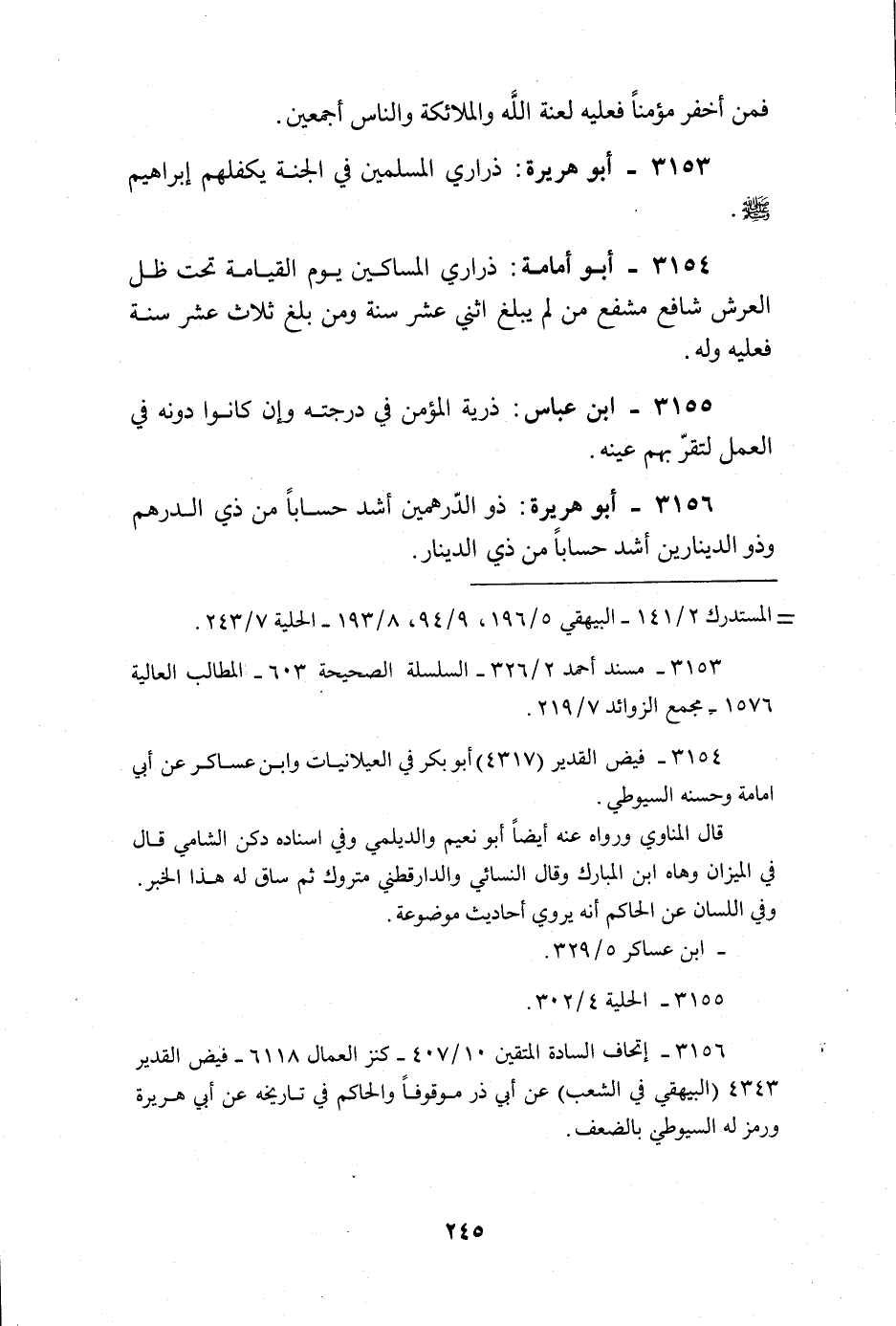 ذَرَارِي الْمَسَاكِين يَوْم الْقِيَامَة تَحت ظلّ الْعَرْش شَافِع مُشَفع من لم يبلغ اثْنَي عشر سنة وَمن بلغ ثَلَاث عشر سنة فَعَلَيهِ وَله
