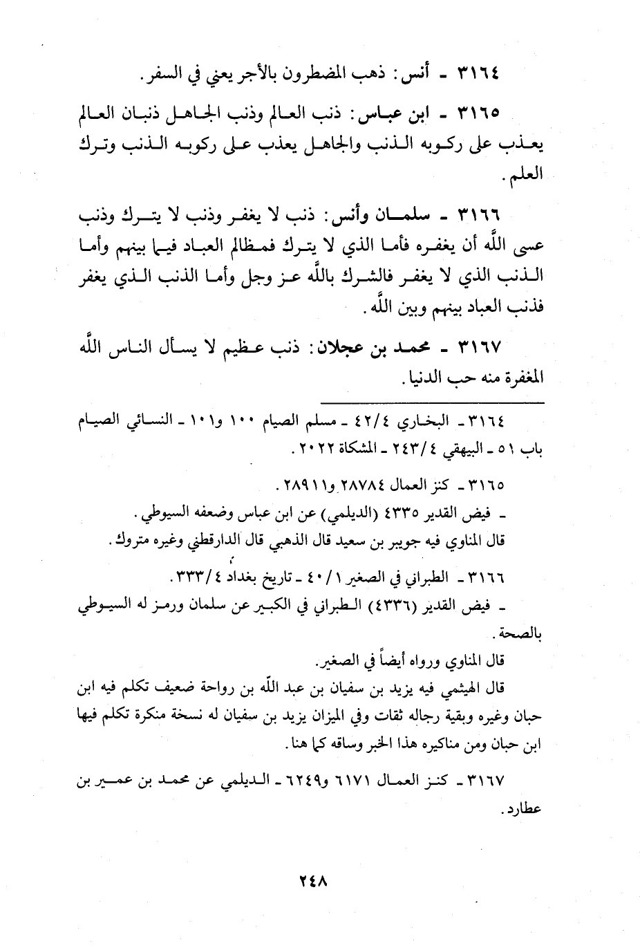 ذَنْب الْعَالم وذنب الْجَاهِل ذنبان الْعَالم يعذب على ركُوبه الذَّنب وَالْجَاهِل يعذب على ركُوبه الذَّنب وَترك الْعلم