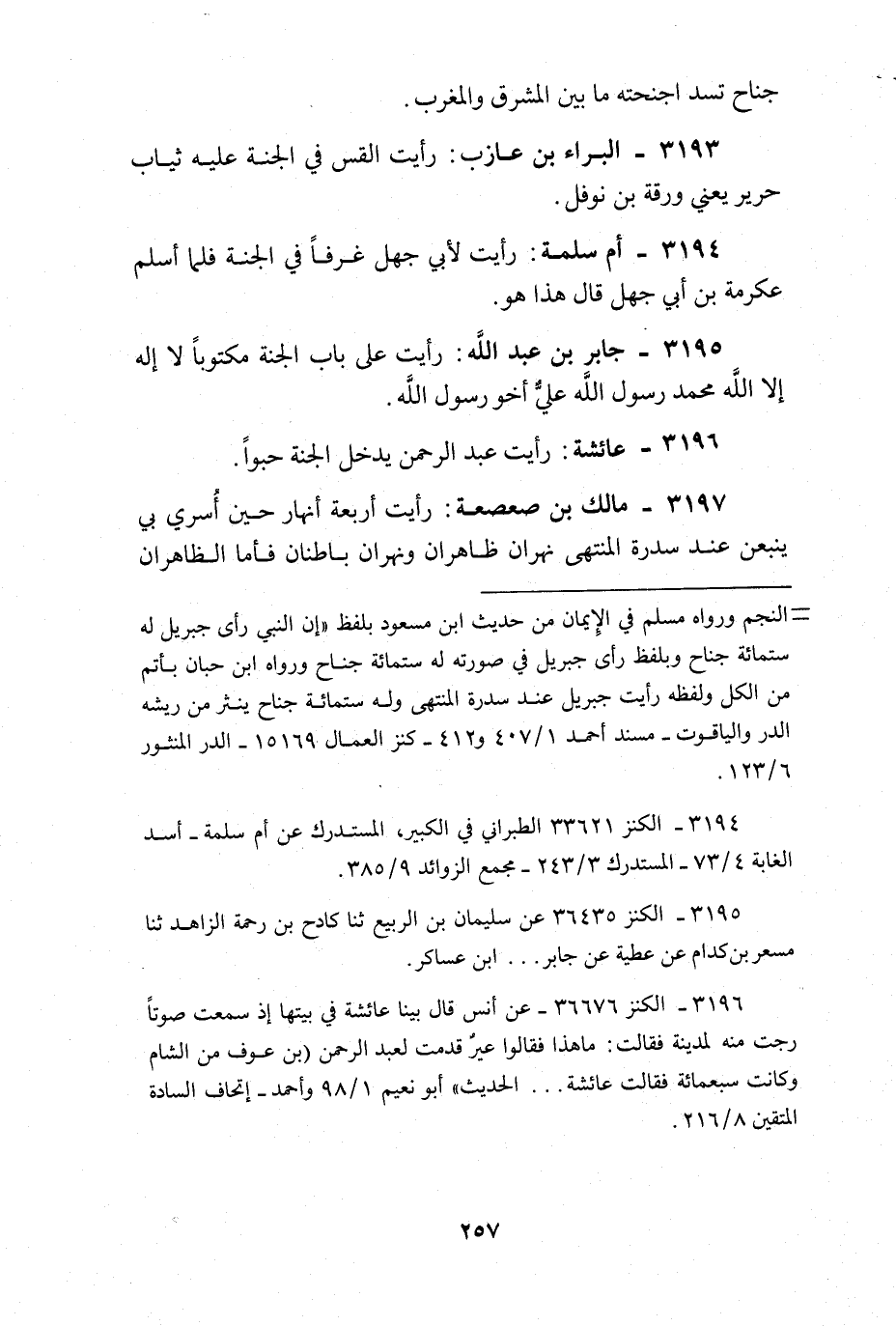 رَأَيْت أَرْبَعَة أَنهَار حِين أسرِي بِي ينبعن عِنْد سِدْرَة الْمُنْتَهى نهران ظاهران ونهران باطنان فَأَما الظاهران