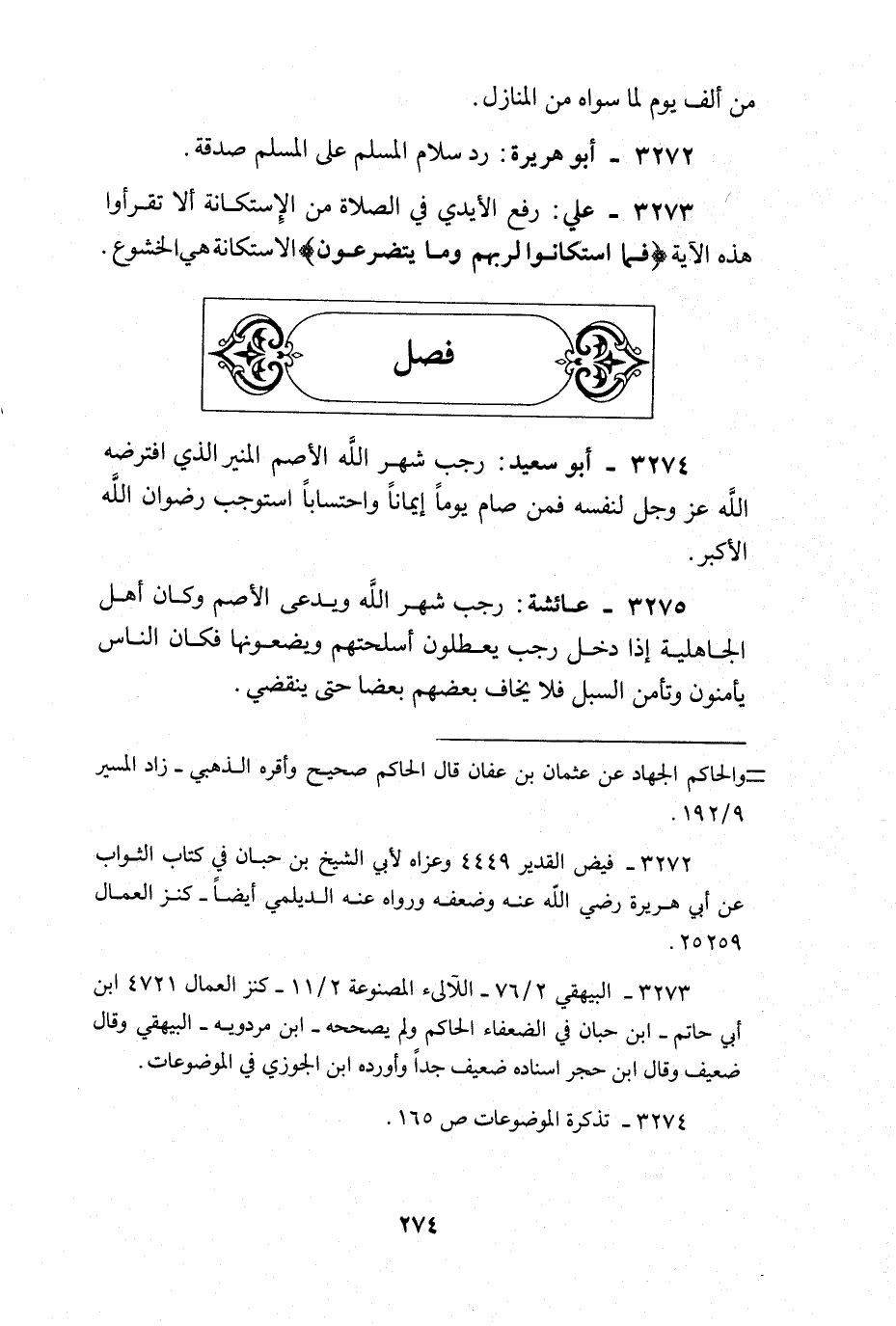 3275 - عَائِشَة رَجَب شهر الله ويدعى الْأَصَم وَكَانَ أهل الْجَاهِلِيَّة إِذا دخل رَجَب يعطلون أسلحتهم ويضعونها فَكَانَ النَّاس يأمنون وتأمن السبل فَلَا يخَاف بَعضهم بَعْضًا حَتَّى يَنْقَضِي