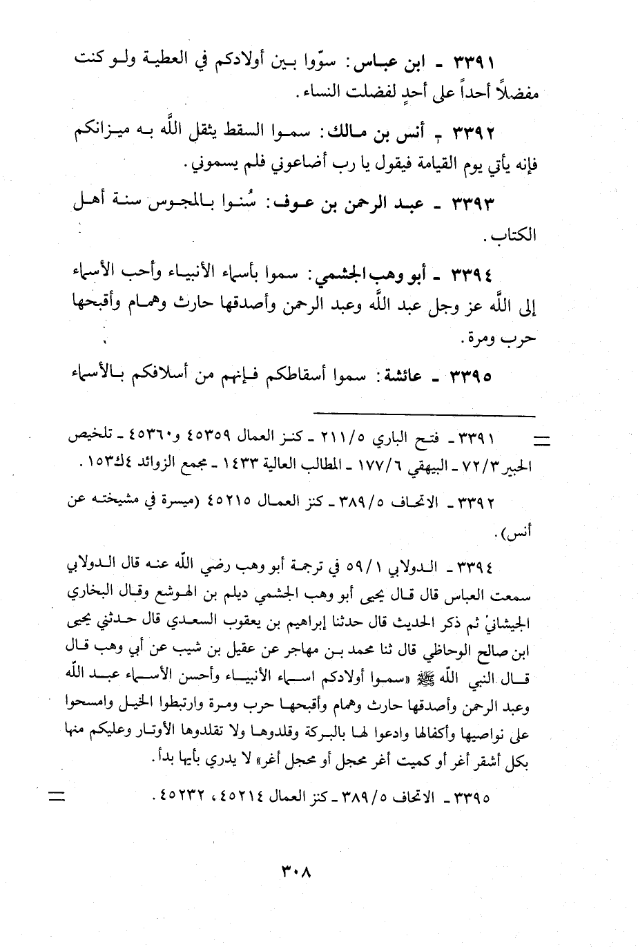 سموا بأسماء الْأَنْبِيَاء وَأحب الْأَسْمَاء إِلَى الله عز وَجل عبد الله وَعبد الرَّحْمَن وَأصْدقهَا حَارِث وَهَمَّام وأقبحها حَرْب وَمرَّة