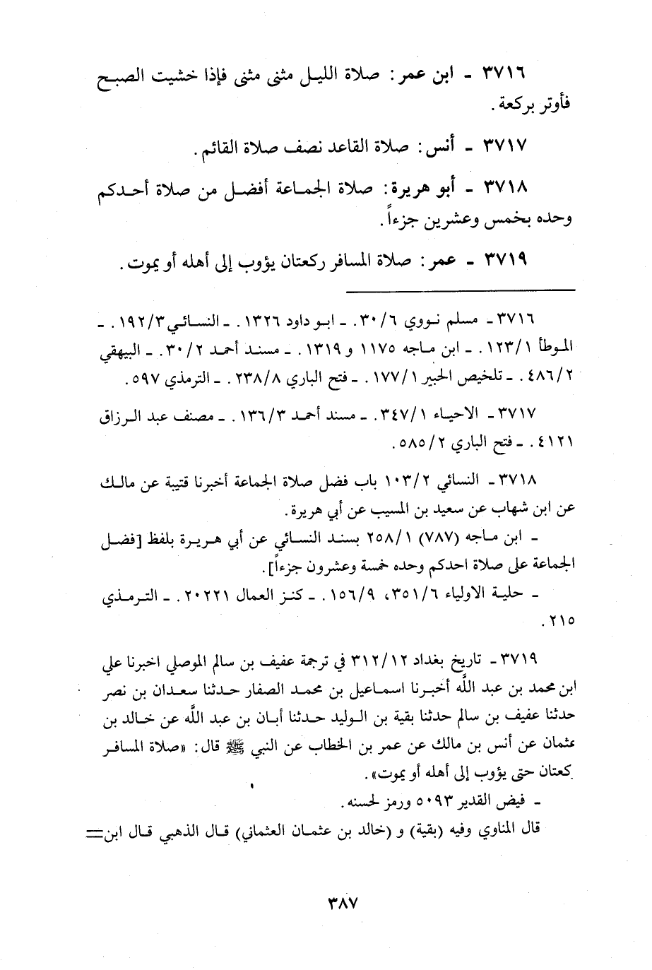 صَلَاة الْمُسَافِر رَكْعَتَانِ يؤوب إِلَى أَهله أَو يَمُوت
