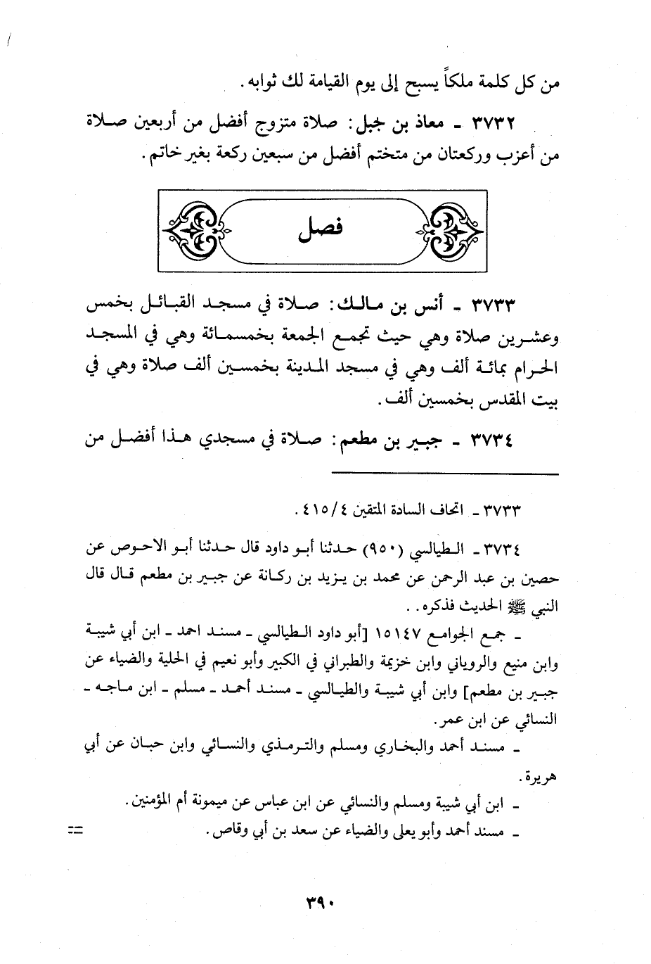 صَلَاة فِي مَسْجِد الْقَبَائِل بِخمْس وَعشْرين صَلَاة وَهِي حَيْثُ تجمع الْجُمُعَة بِخَمْسِمِائَة وَهِي فِي الْمَسْجِد الْحَرَام بِمِائَة ألف وَهِي فِي مَسْجِد الْمَدِينَة بِخَمْسِينَ ألف صَلَاة وَهِي فِي بَيت الْمُقَدّس بِخَمْسِينَ ألف