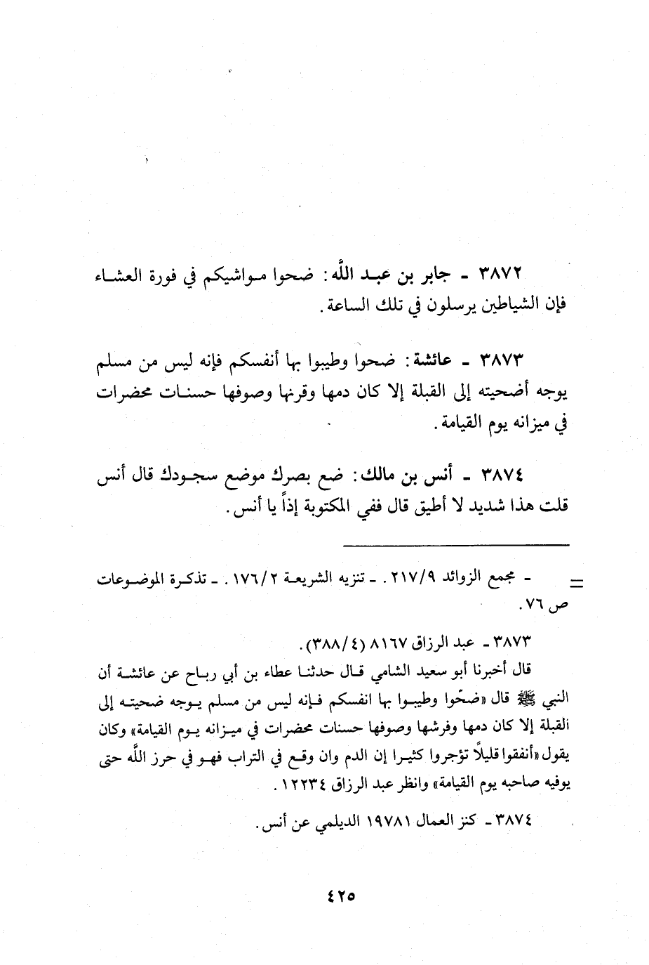 ضحوا مواشيكم فِي فورة الْعشَاء فَإِن الشَّيَاطِين يرسلون فِي تِلْكَ السَّاعَة