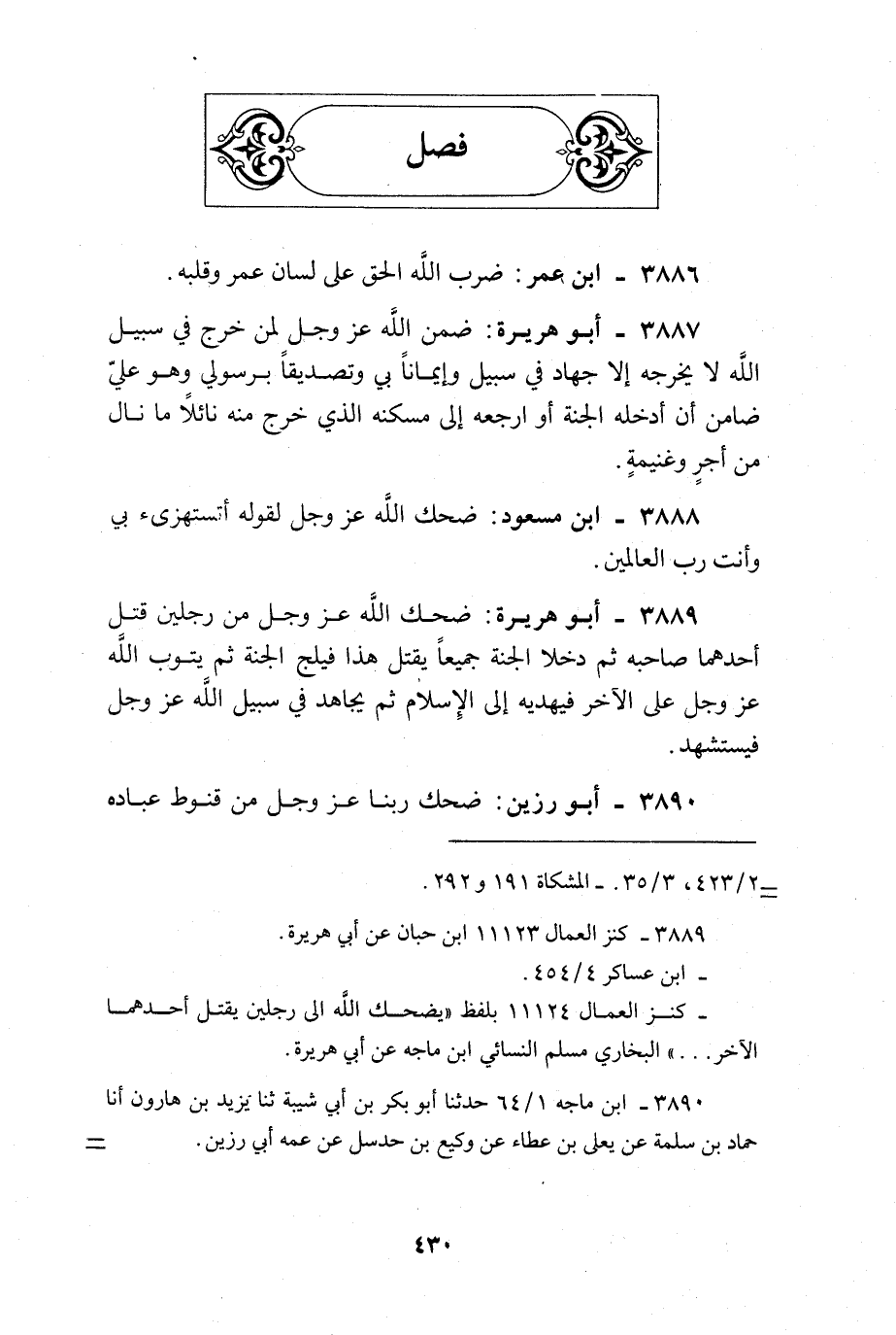 ضحك الله عز وَجل من رجلَيْنِ قتل أَحدهمَا صَاحبه ثمَّ دخلا الْجنَّة جَمِيعًا يقتل هَذَا فيلج الْجنَّة ثمَّ يَتُوب الله عز وَجل على الآخر فيهديه إِلَى الْإِسْلَام ثمَّ يُجَاهد فِي سَبِيل الله عز وَجل فيستشهد