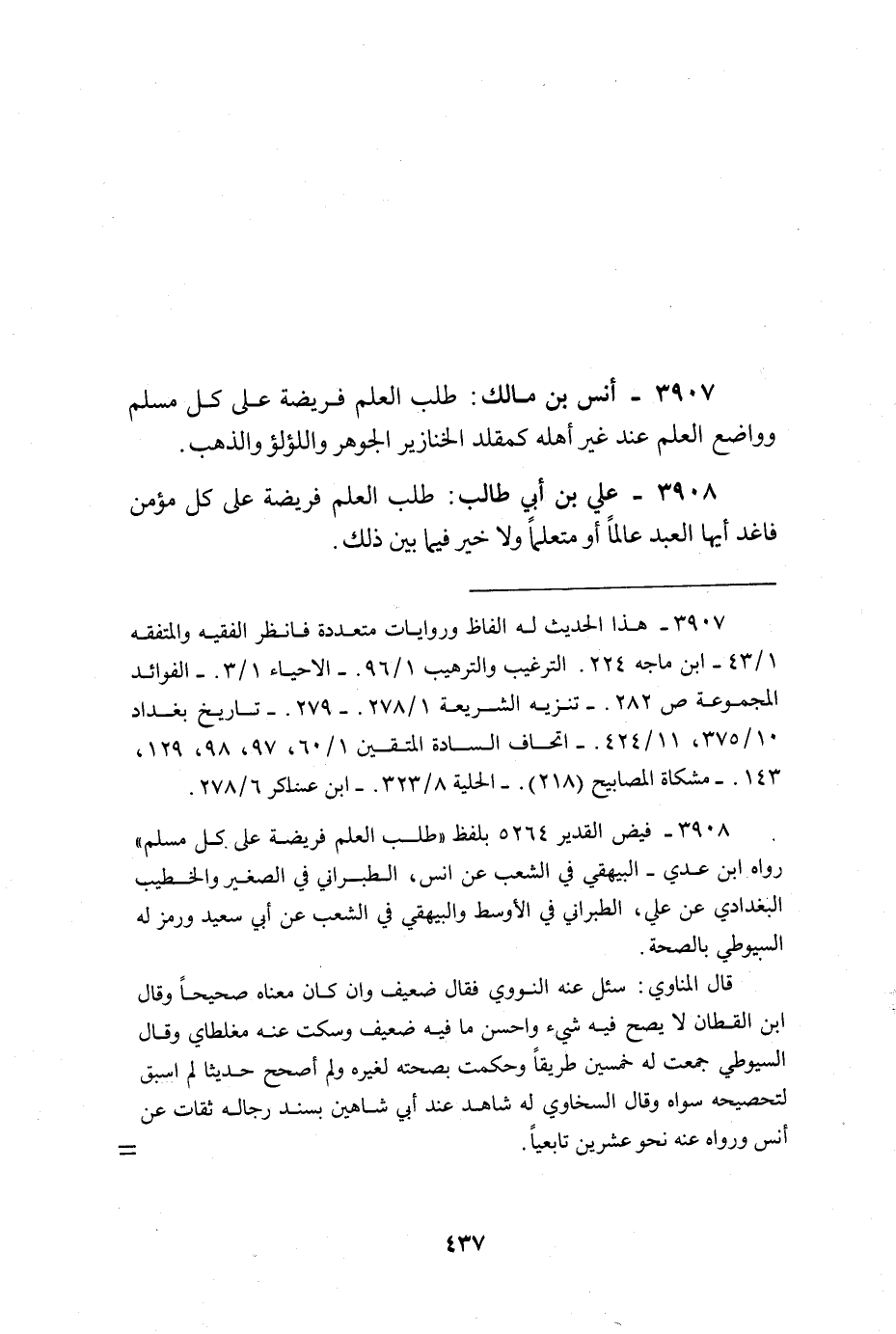 طلب الْعلم فَرِيضَة على كل مُؤمن فاغد أَيهَا العَبْد عَالما أَو متعلما وَلَا خير فِيمَا بَين ذَلِك