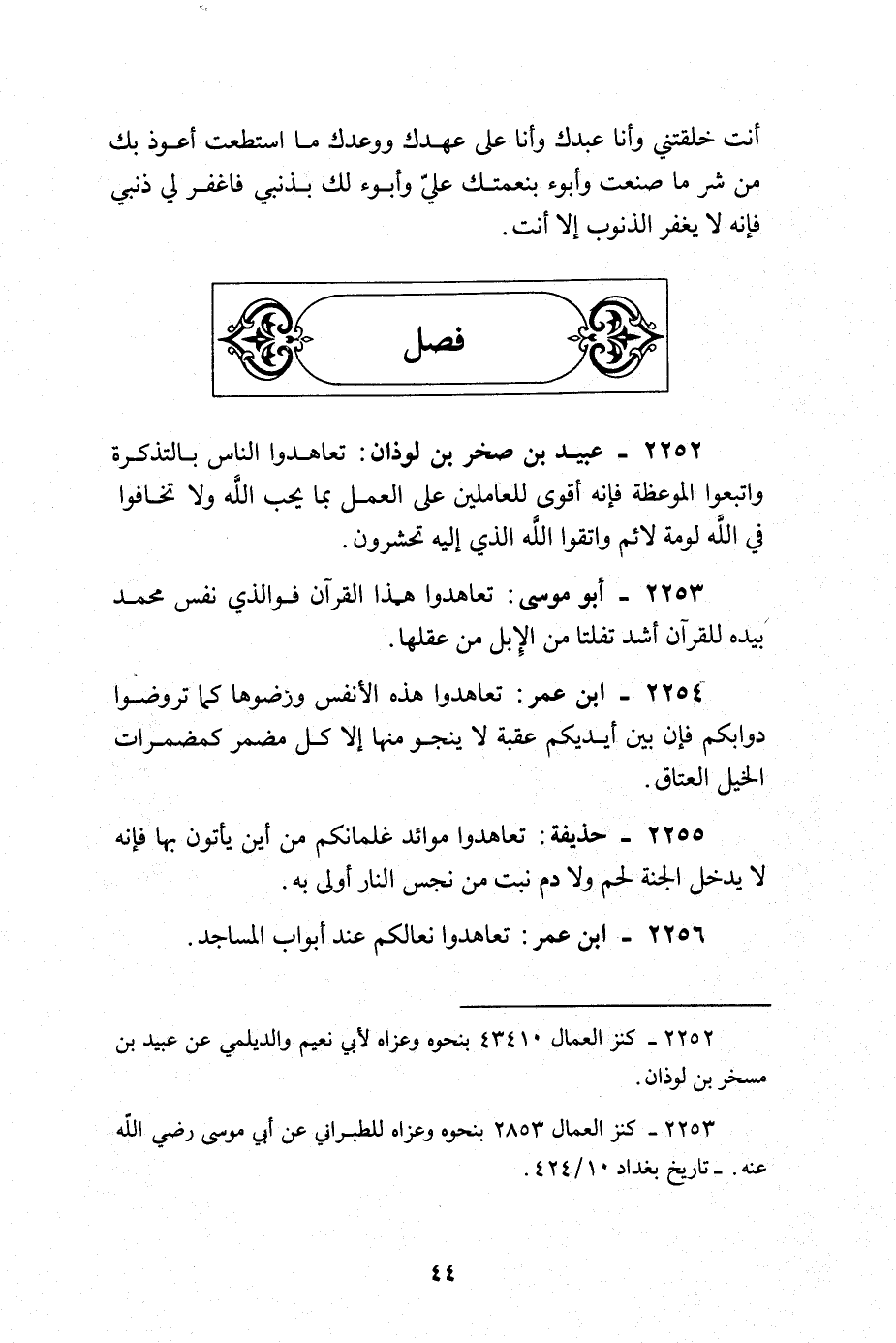 أَنْت خلقتني وَأَنا عَبدك وَأَنا على عَهْدك وَوَعدك مَا اسْتَطَعْت أعوذ بك من شَرّ مَا صنعت وأبوء بنعمتك عَليّ وأبوء لَك بذنبي فَاغْفِر لي ذَنبي فَإِنَّهُ لَا يغْفر الذُّنُوب إِلَّا أَنْت