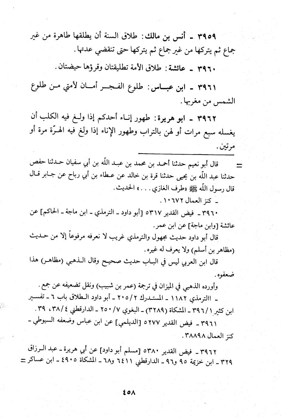 طهُور إِنَاء أحدكُم إِذا ولغَ فِيهِ الْكَلْب أَن يغسلهُ سبع مَرَّات أَو لَهُنَّ بِالتُّرَابِ وطهور الْإِنَاء إِذا ولغَ فِيهِ الْهِرَّة مرّة أَو مرَّتَيْنِ