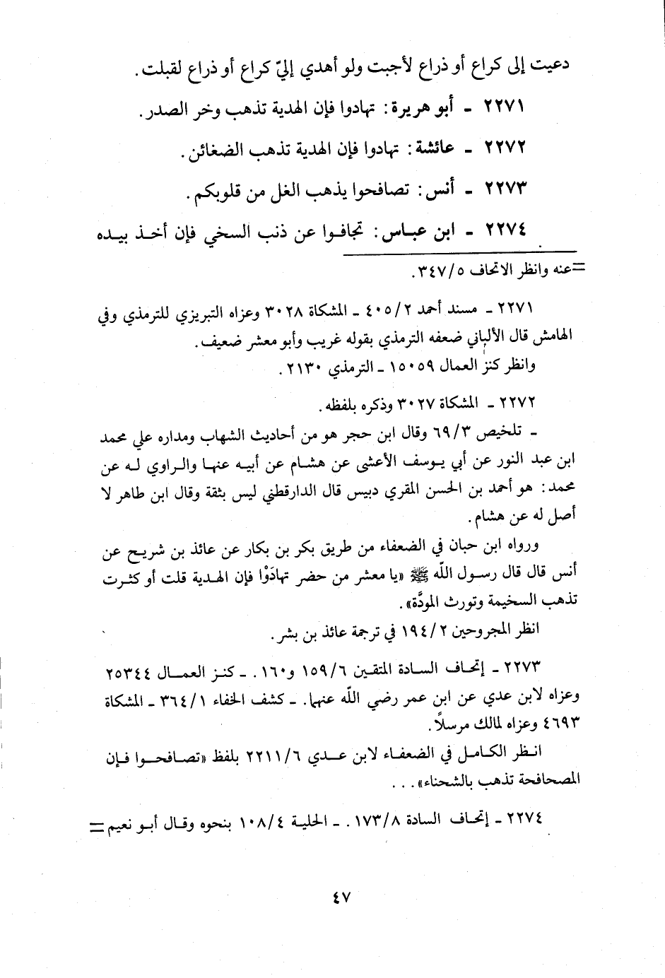 تهادوا فَإِن الْهَدِيَّة تذْهب وخر الصَّدْر