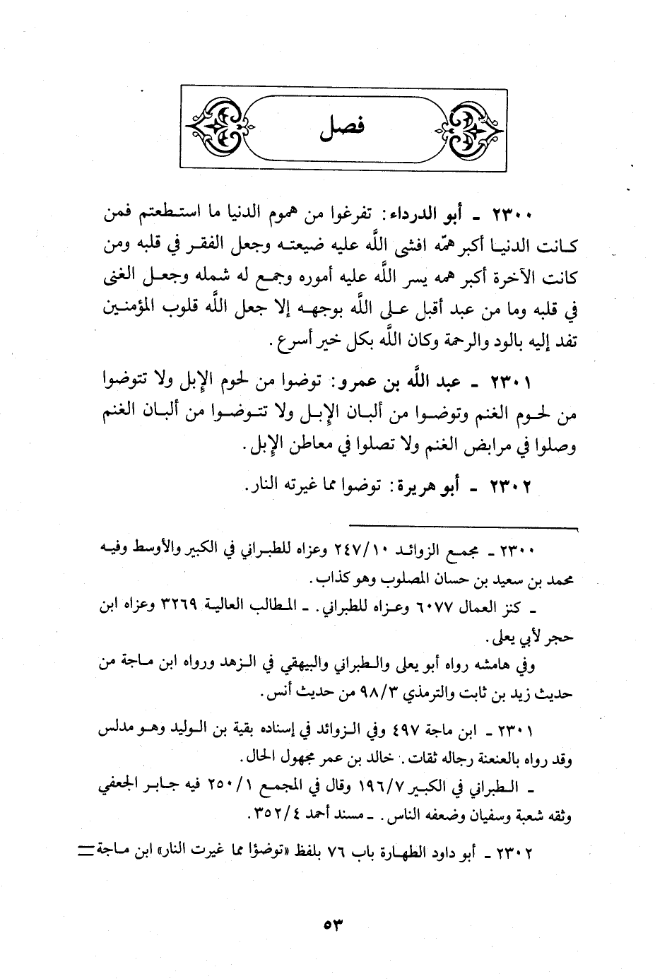 تفرغوا من هموم الدُّنْيَا مَا اسْتَطَعْتُم فَمن كَانَت الدُّنْيَا أكبر همه افشى الله عَلَيْهِ ضيعته وَجعل الْفقر فِي قلبه وَمن كَانَت الْآخِرَة أكبر همه يسر الله عَلَيْهِ أُمُوره وَجمع لَهُ شَمله وَجعل الْغنى فِي قلبه وَمَا من عبد أقبل على الله بِوَجْهِهِ إِلَّا جعل الله قُلُوب الْمُؤمنِينَ تفد إِلَيْهِ بالود وَالرَّحْمَة وَكَانَ الله بِكُل خير أسْرع