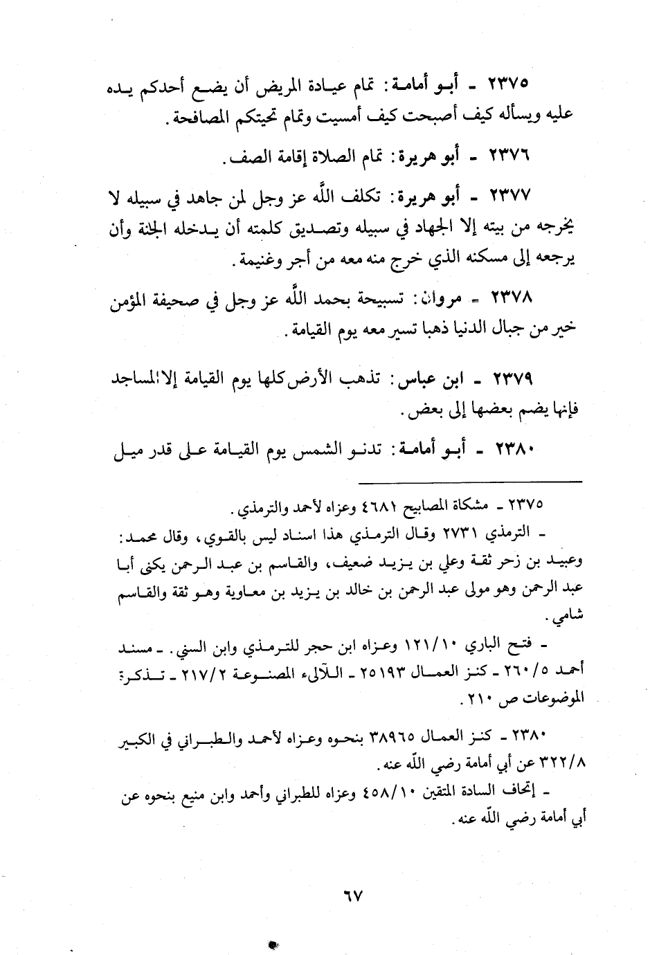 تَمام عِيَادَة الْمَرِيض أَن يضع أحدكُم يَده عَلَيْهِ ويسزله كَيفَ أَصبَحت كَيفَ أمسيت وَتَمام تحيتكم المصافحة