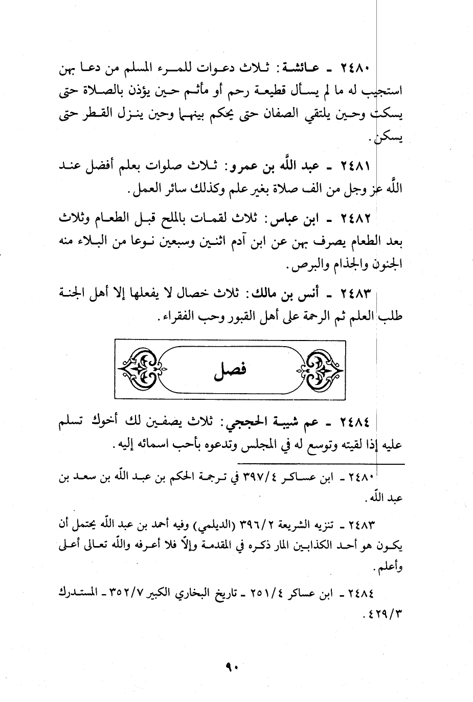 ثَلَاث بصفين لَك اخوك تسلم عَلَيْهِ إِذا لَقيته وَتوسع لَهُ فِي الْمجْلس وَتَدْعُوهُ بِأحب اسمائه إِلَيْهِ