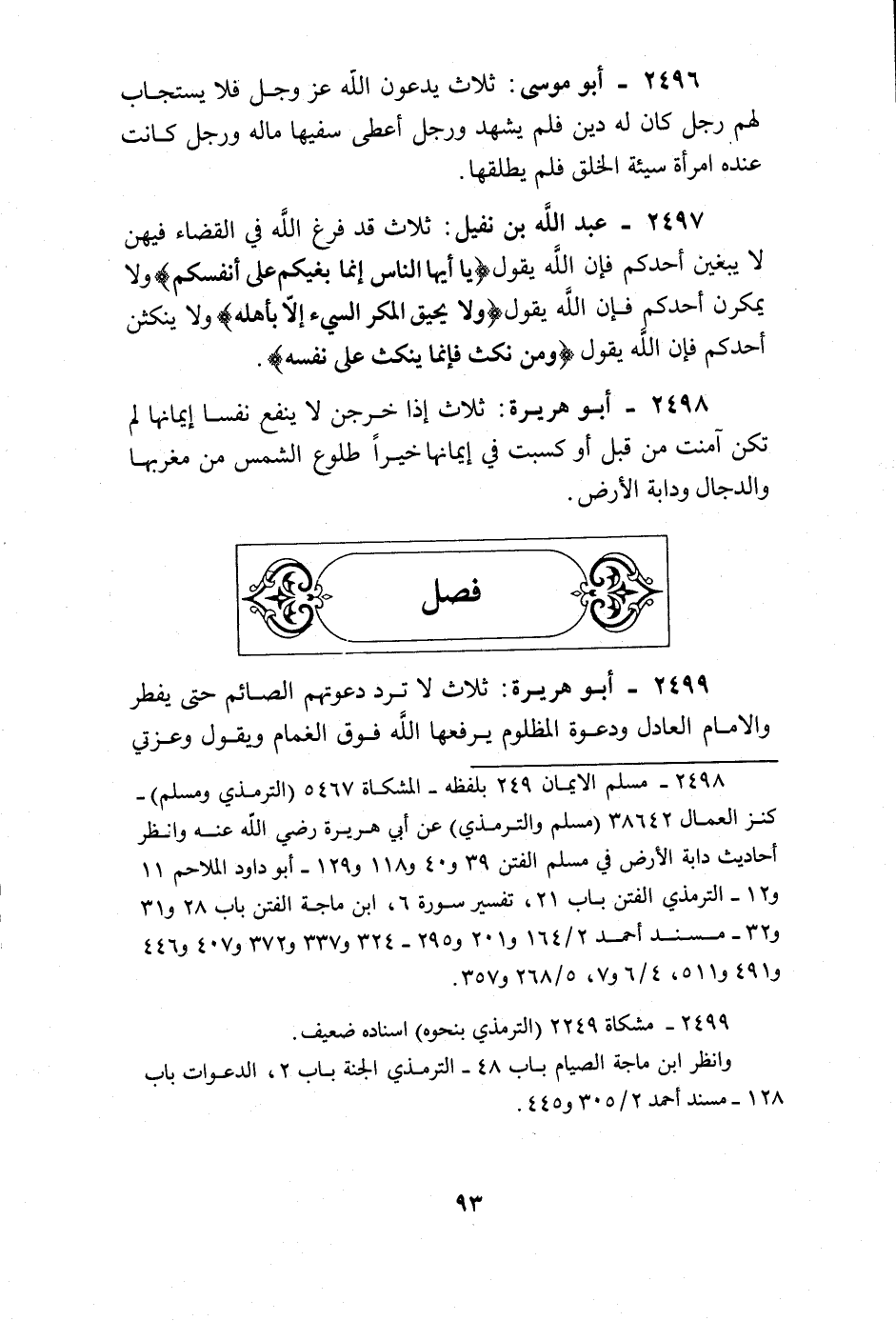 ثَلَاث لَا ترد دعوتهم الصَّائِم حَتَّى يفْطر والامام الْعَادِل ودعوة الْمَظْلُوم يرفعها الله فَوق الْغَمَام وَيَقُول وَعِزَّتِي