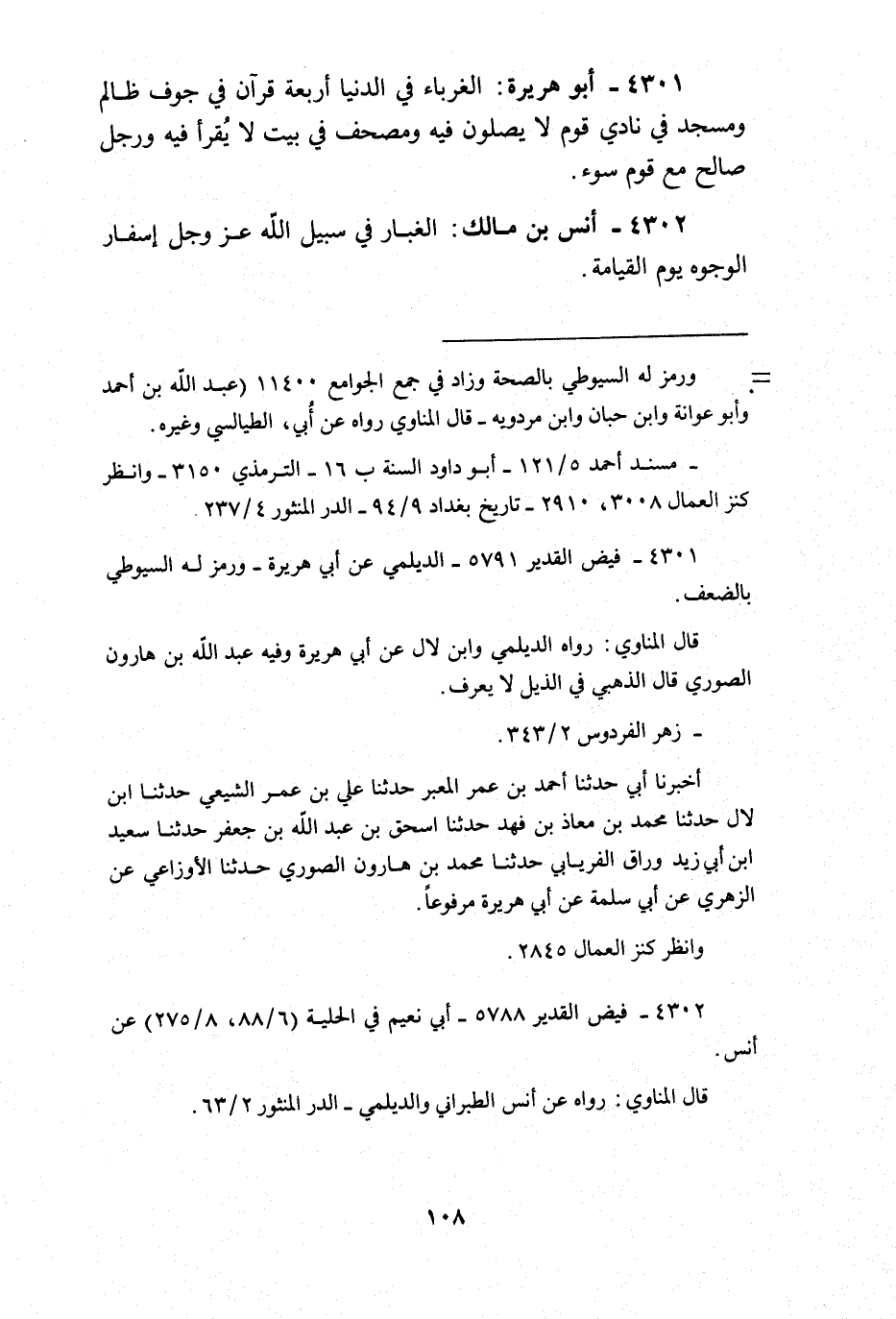 الغرباء فِي الدُّنْيَا أَرْبَعَة قُرْآن فِي جَوف ظَالِم وَمَسْجِد فِي نَادِي قوم لَا يصلونَ فِيهِ ومصحف فِي بَيت لَا يقْرَأ فِيهِ وَرجل صَالح مَعَ قوم سوء