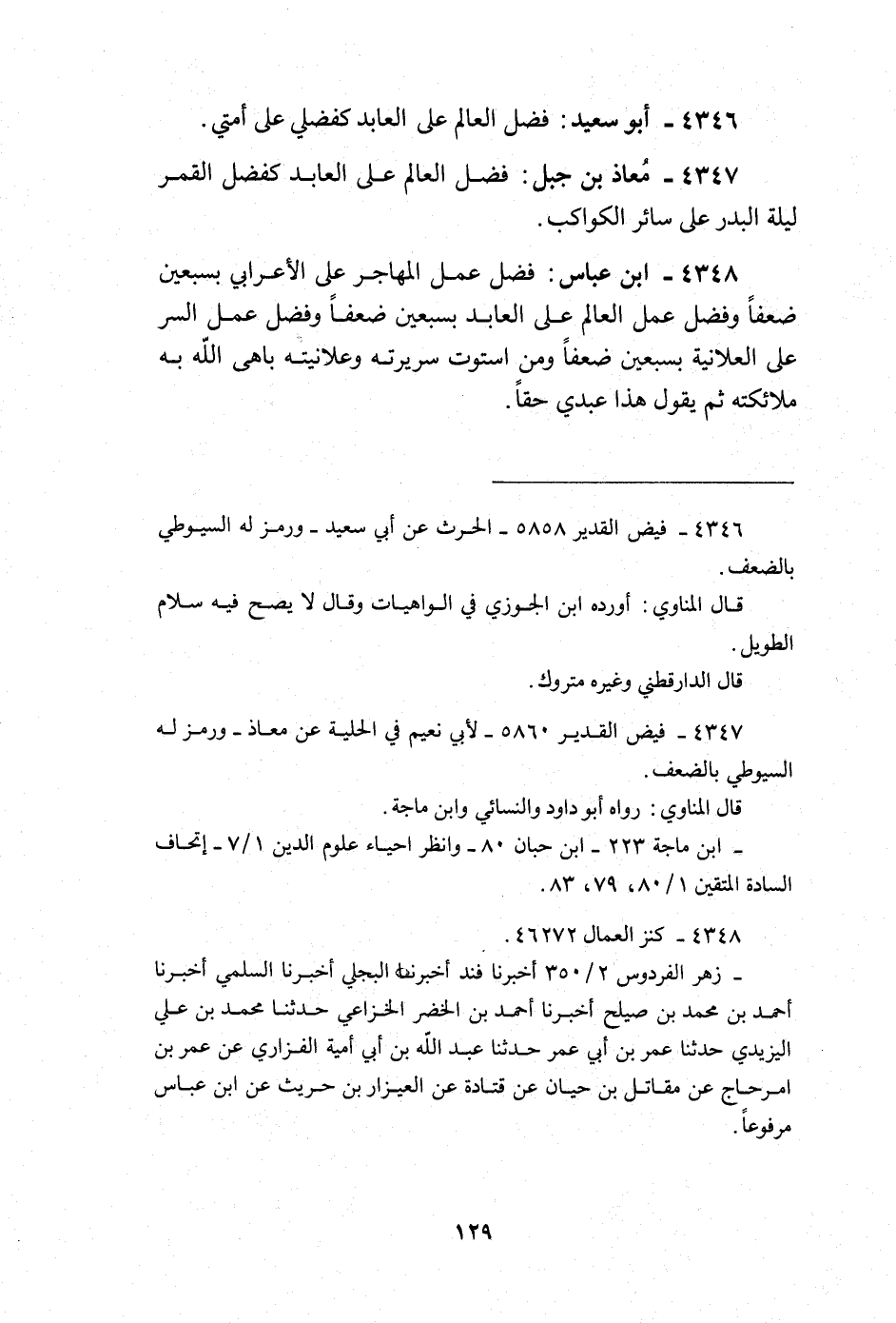 فضل عمل المُهَاجر على الْأَعرَابِي بسبعين ضعفا وَفضل عمل الْعَالم عَليّ العابد بسبعين ضعفا وَفضل عمل السِّرّ على الْعَلَانِيَة بسبعين ضعفا وَمن اسْتَوَت سَرِيرَته وعلانيته باهى الله بِهِ مَلَائكَته ثمَّ يَقُول هَذَا عَبدِي حَقًا