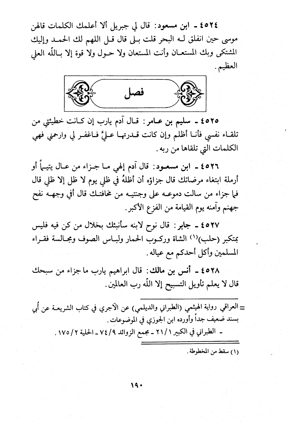 قَالَ لي جِبْرِيل أَلا أعلمك الْكَلِمَات قالهن مُوسَى حِين انْفَلق لَهُ الْبَحْر قلت بلَى قَالَ قل اللَّهُمَّ لَك الْحَمد وَإِلَيْك المشتكى وَبِك الْمُسْتَعَان وَأَنت الْمُسْتَعَان وَلَا حول وَلَا قُوَّة إِلَّا بِاللَّه الْعلي الْعَظِيم