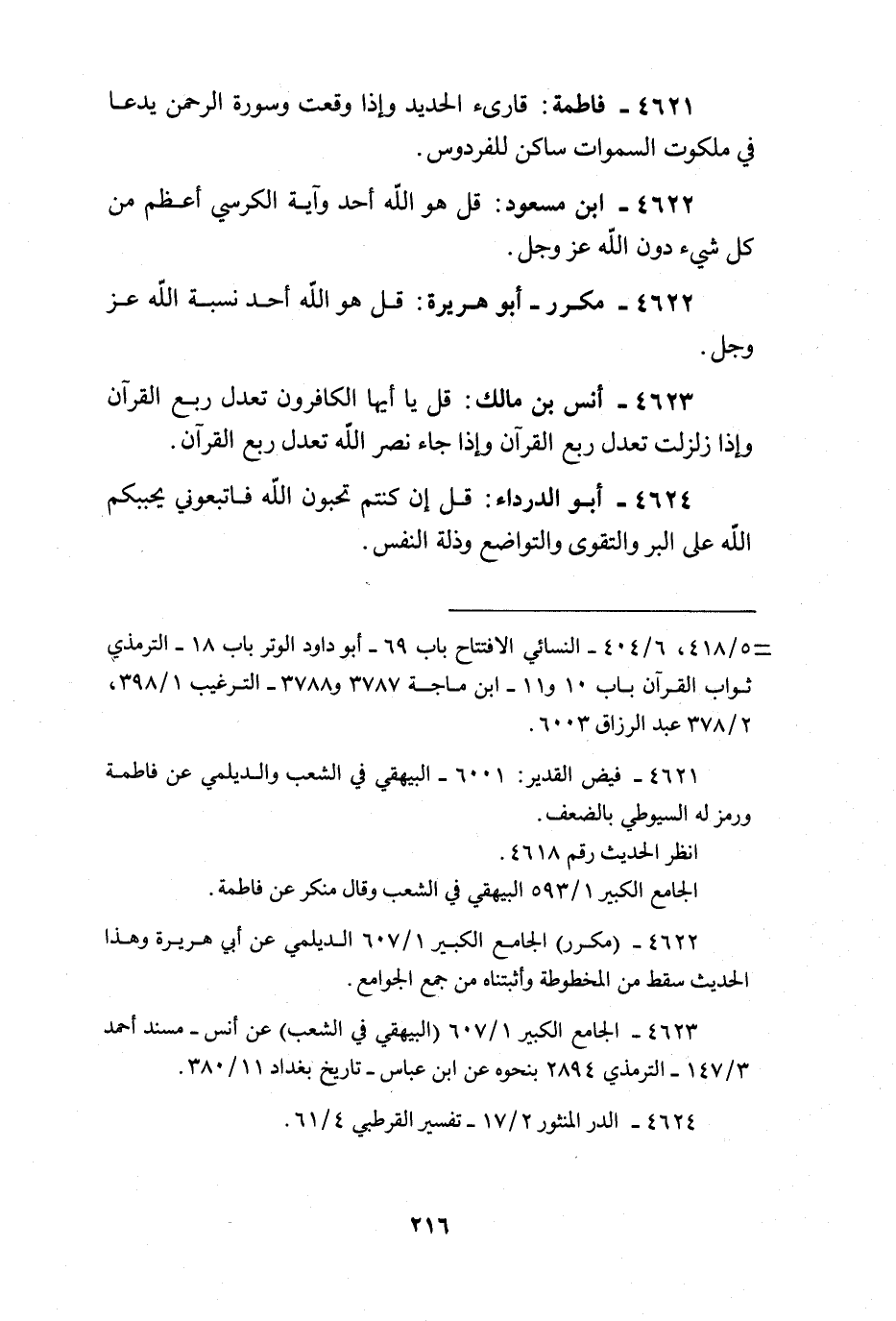 قل يَا أَيهَا الْكَافِرُونَ تعدل ربع الْقُرْآن وَإِذا زلزلت تعدل ربع الْقُرْآن وَإِذا جَاءَ نصر الله تعدل ربع الْقُرْآن
