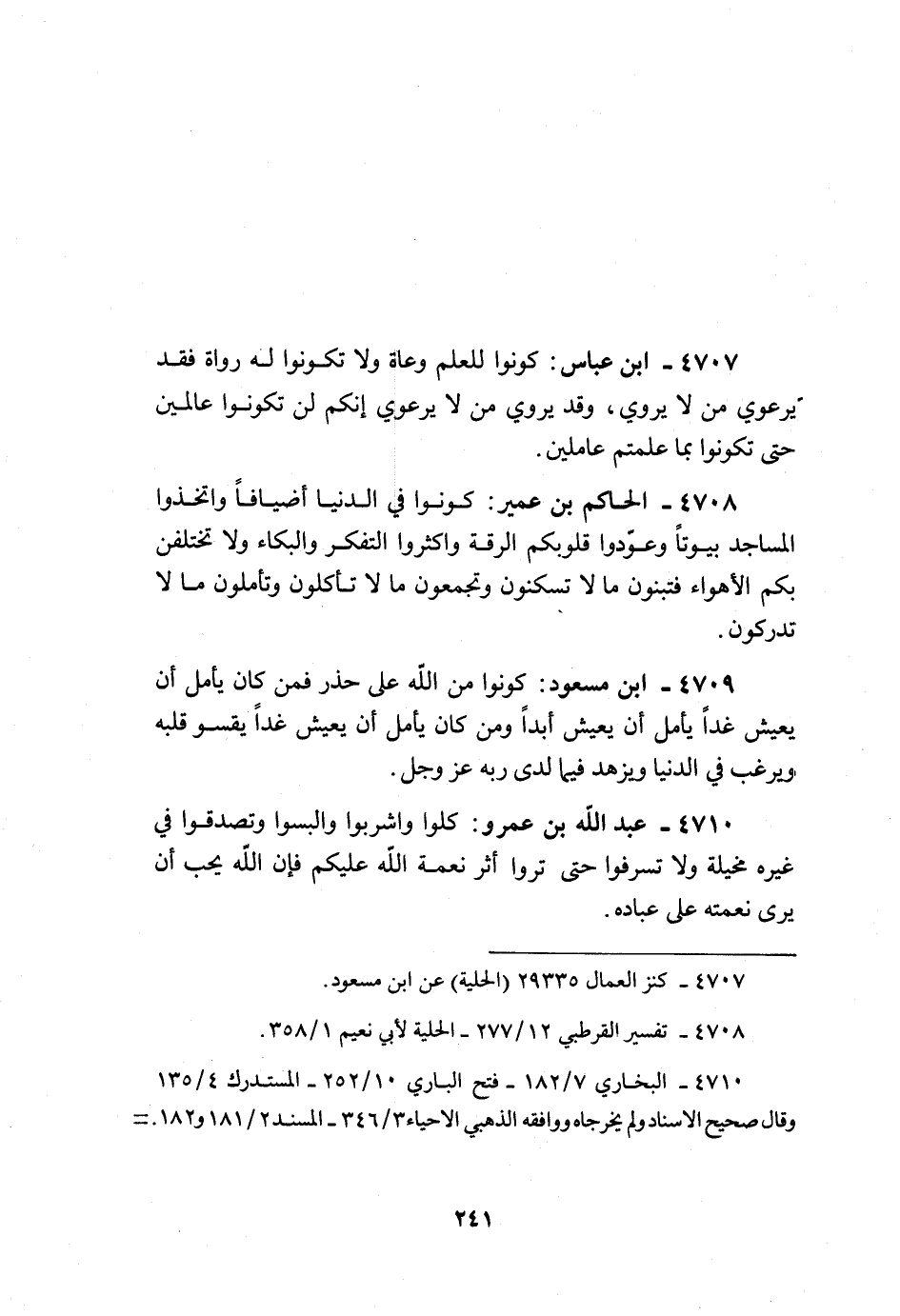 كونُوا للْعلم وعاة وَلَا تَكُونُوا لَهُ رُوَاة فقد يرعوي من لَا يروي وَقد يروي من لَا يرعوي إِنَّكُم لن تَكُونُوا عَالمين حَتَّى تَكُونُوا بِمَا علمْتُم عاملين
