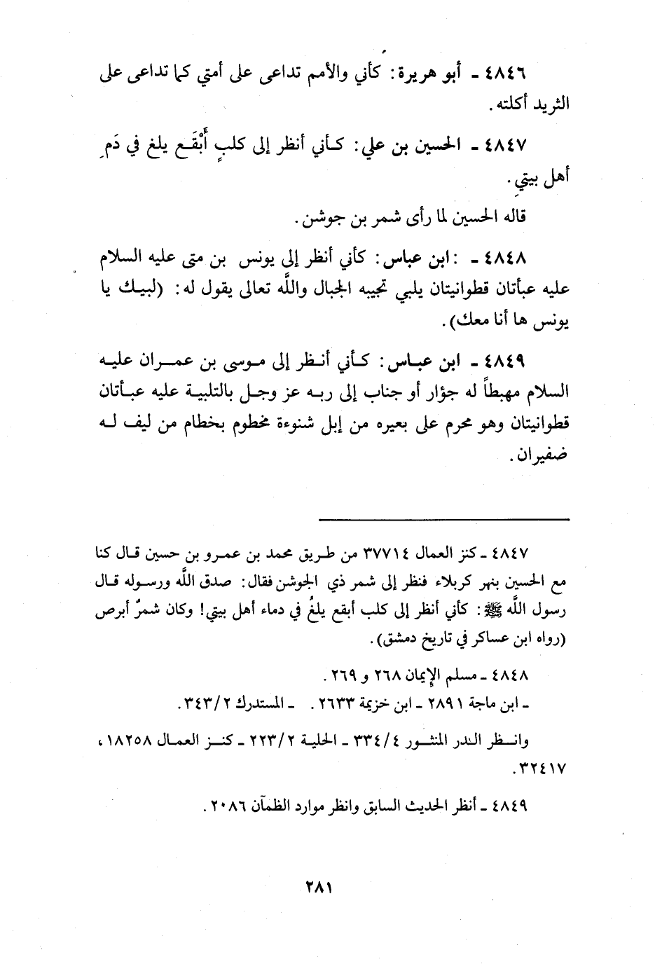 كَأَنِّي أنظر إِلَى كلب أبقع يلغ فِي دم أهل بَيْتِي