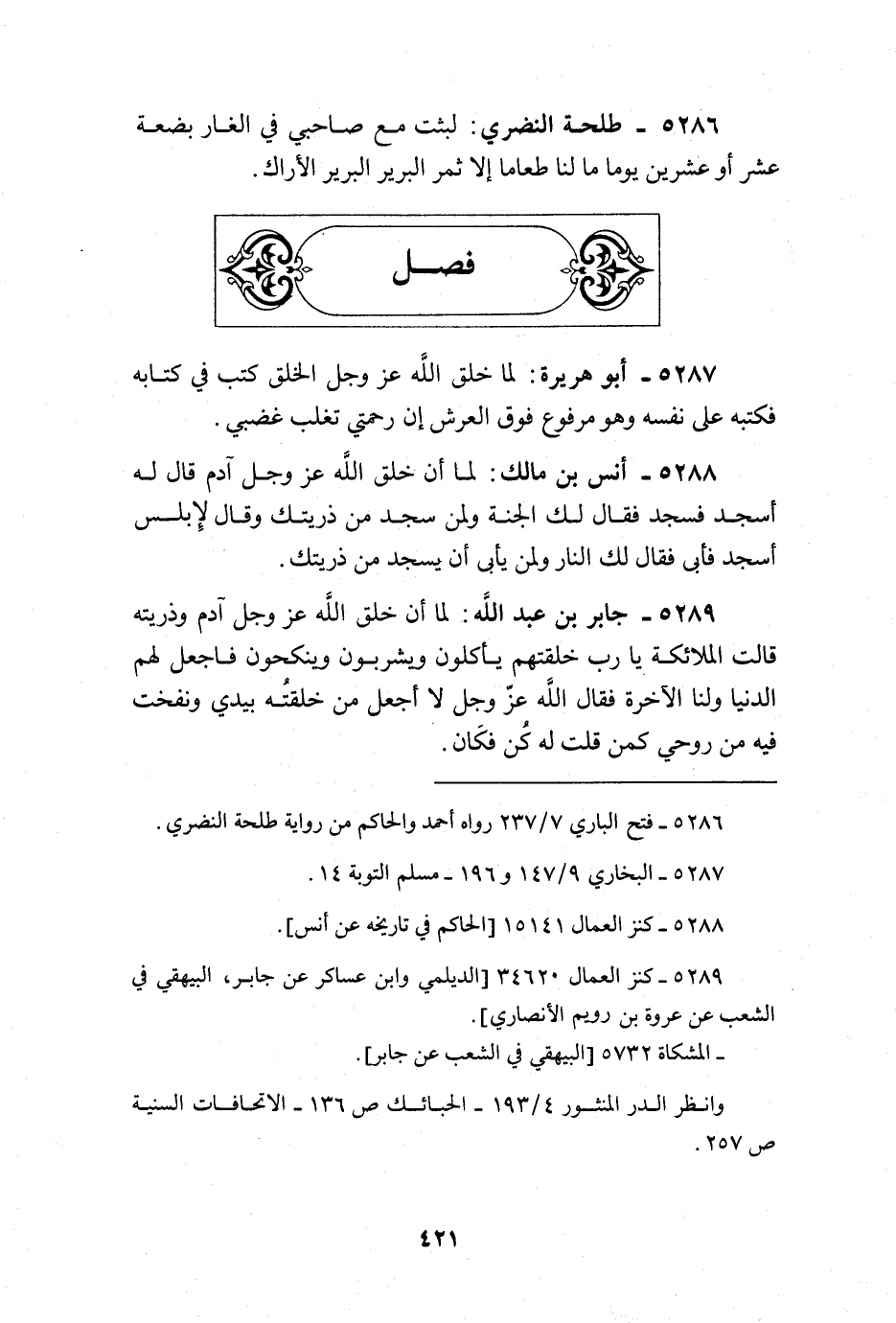 لما أَن خلق الله عز وَجل آدم وَذريته قَالَت الْمَلَائِكَة يَا رب خلقتهمْ يَأْكُلُون وَيَشْرَبُونَ وَيَنْكِحُونَ فَاجْعَلْ لَهُم الدُّنْيَا وَلنَا الْآخِرَة فَقَالَ الله عز وَجل لَا أجعَل من خلقته بيَدي ونفخت فِيهِ من روحي كمن قلت لَهُ كن فَكَانَ
