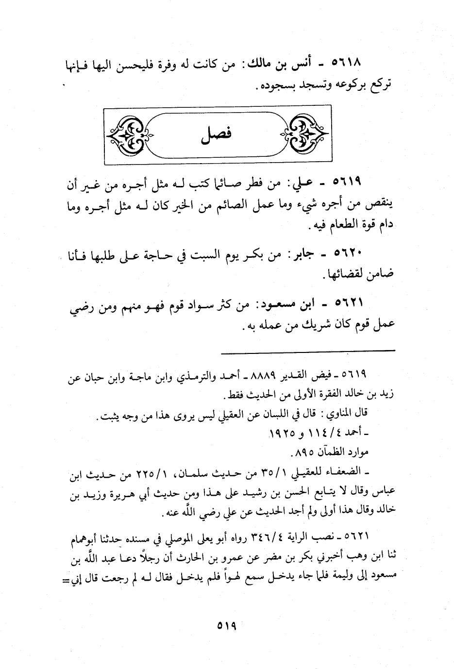 من فطر صَائِما كتب لَهُ مثل أجره من غير أَن ينقص من أجره شَيْء وَمَا عمل الصَّائِم من الْخَيْر كَانَ لَهُ مثل أجره وَمَا دَامَ قُوَّة الطَّعَام فِيهِ
