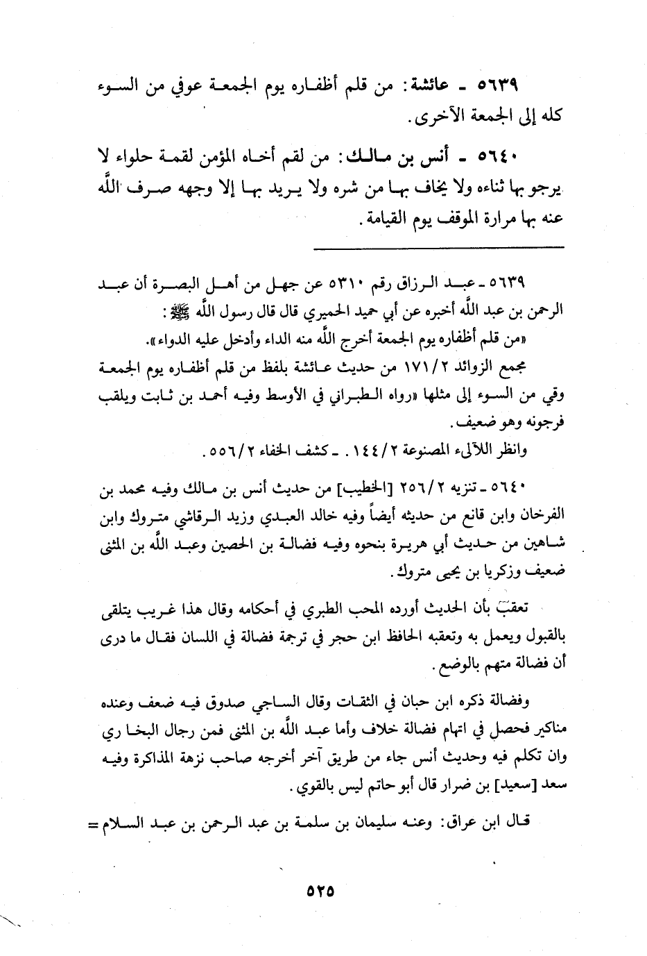 من قلم أَظْفَاره يَوْم الْجُمُعَة عوفي من السوء كُله إِلَى الْجُمُعَة الآخرى