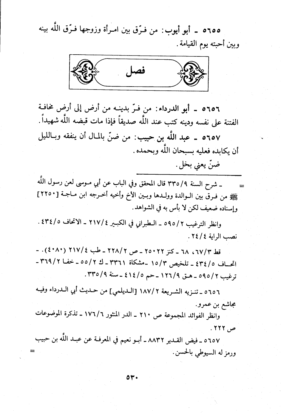 من فرق بَين امْرَأَة وَزوجهَا فرق الله بَينه وَبَين أحبته يَوْم الْقِيَامَة