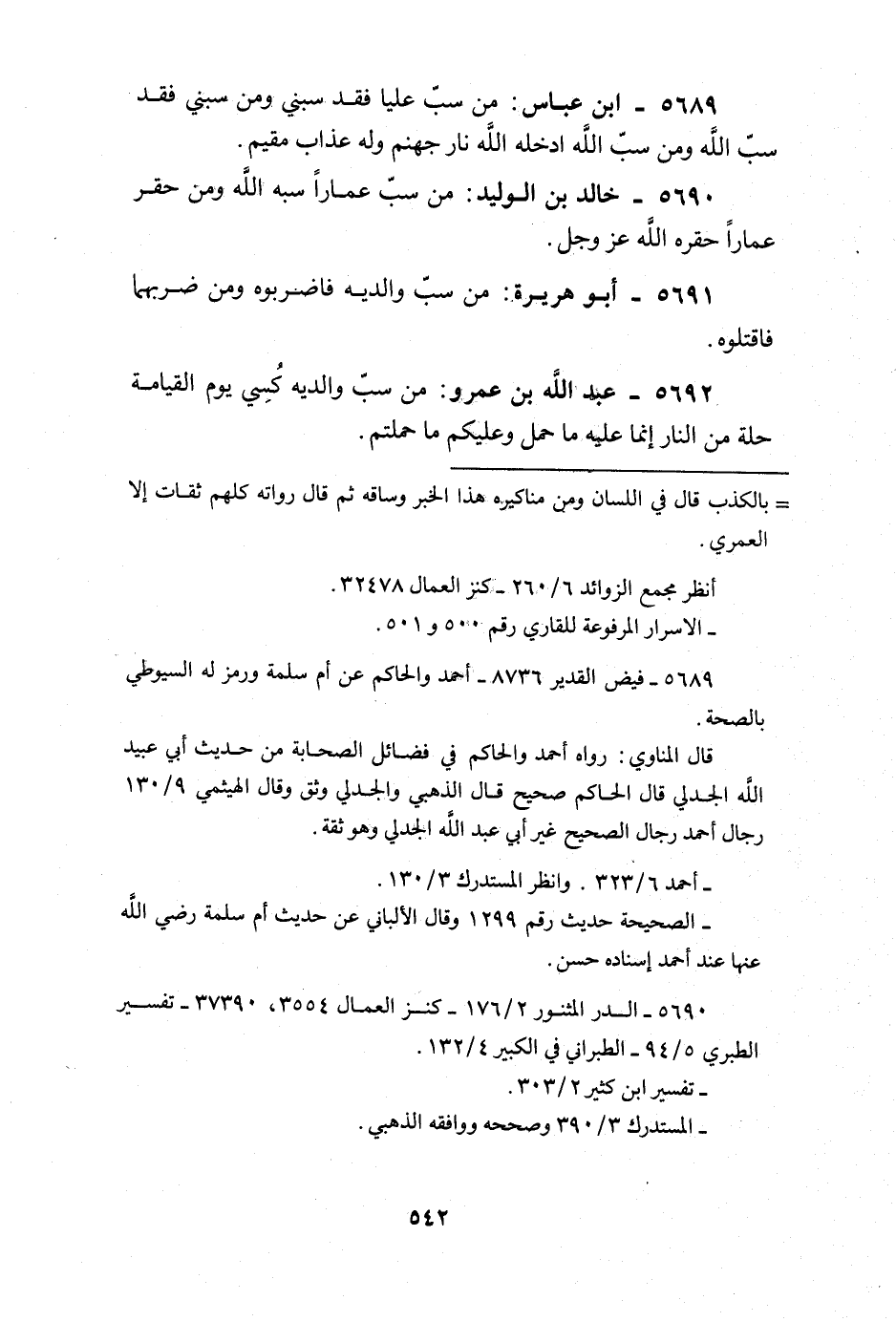 من سبّ وَالِديهِ كسي يَوْم الْقِيَامَة حلَّة من النَّار إِنَّمَا عَلَيْهِ مَا حمل وَعَلَيْكُم مَا حملتم