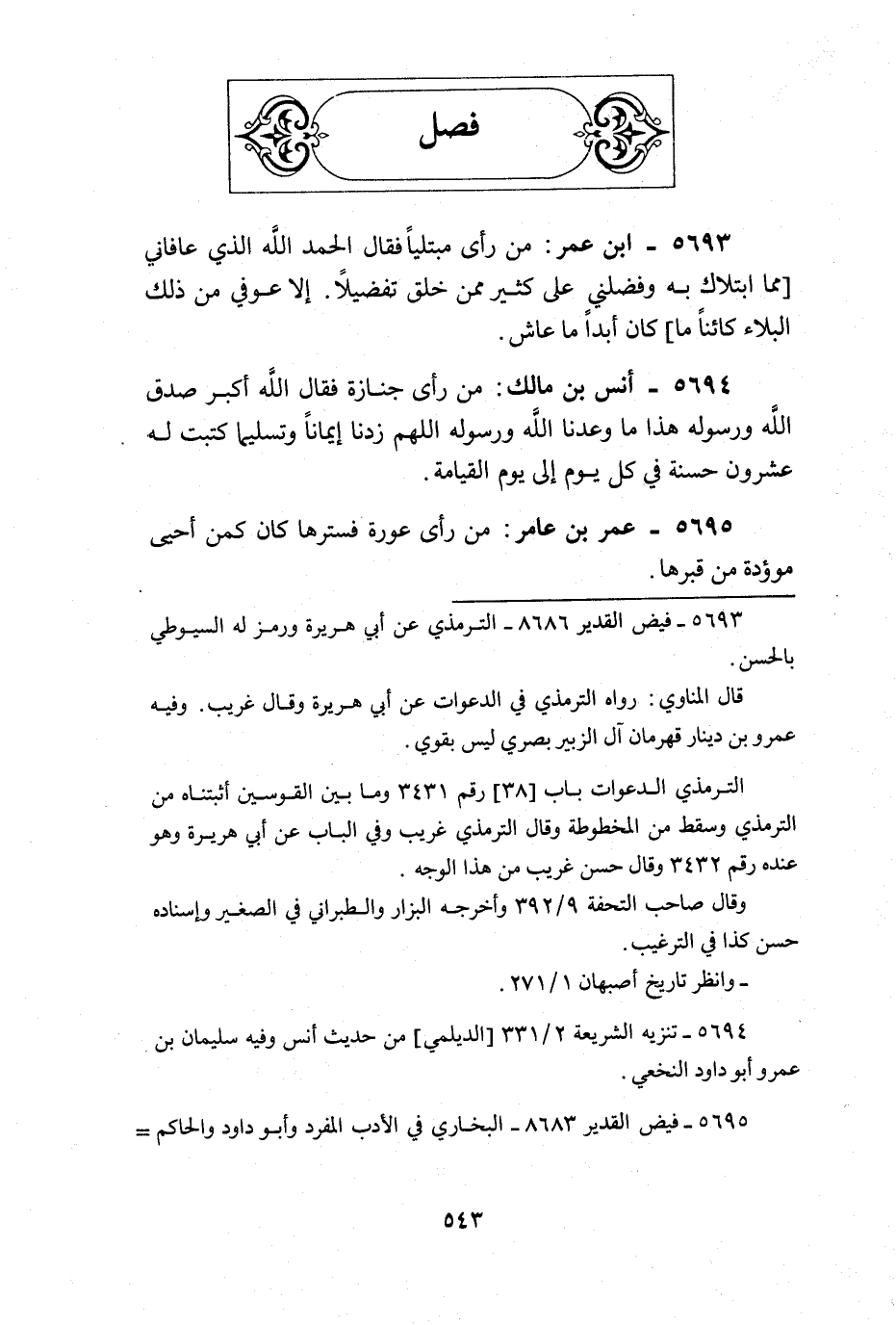 من رأى مبتليا فَقَالَ الْحَمد الله الَّذِي عافاني مِمَّا ابتلاك بِهِ وفضلني على كثير مِمَّن خلق تَفْضِيلًا