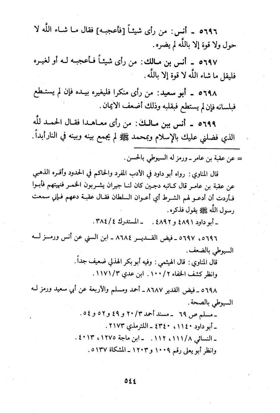 من رأى شَيْئا فأعجبه لَهُ أَو لغيره فَلْيقل مَا شَاءَ الله لَا قُوَّة إِلَّا بِاللَّه