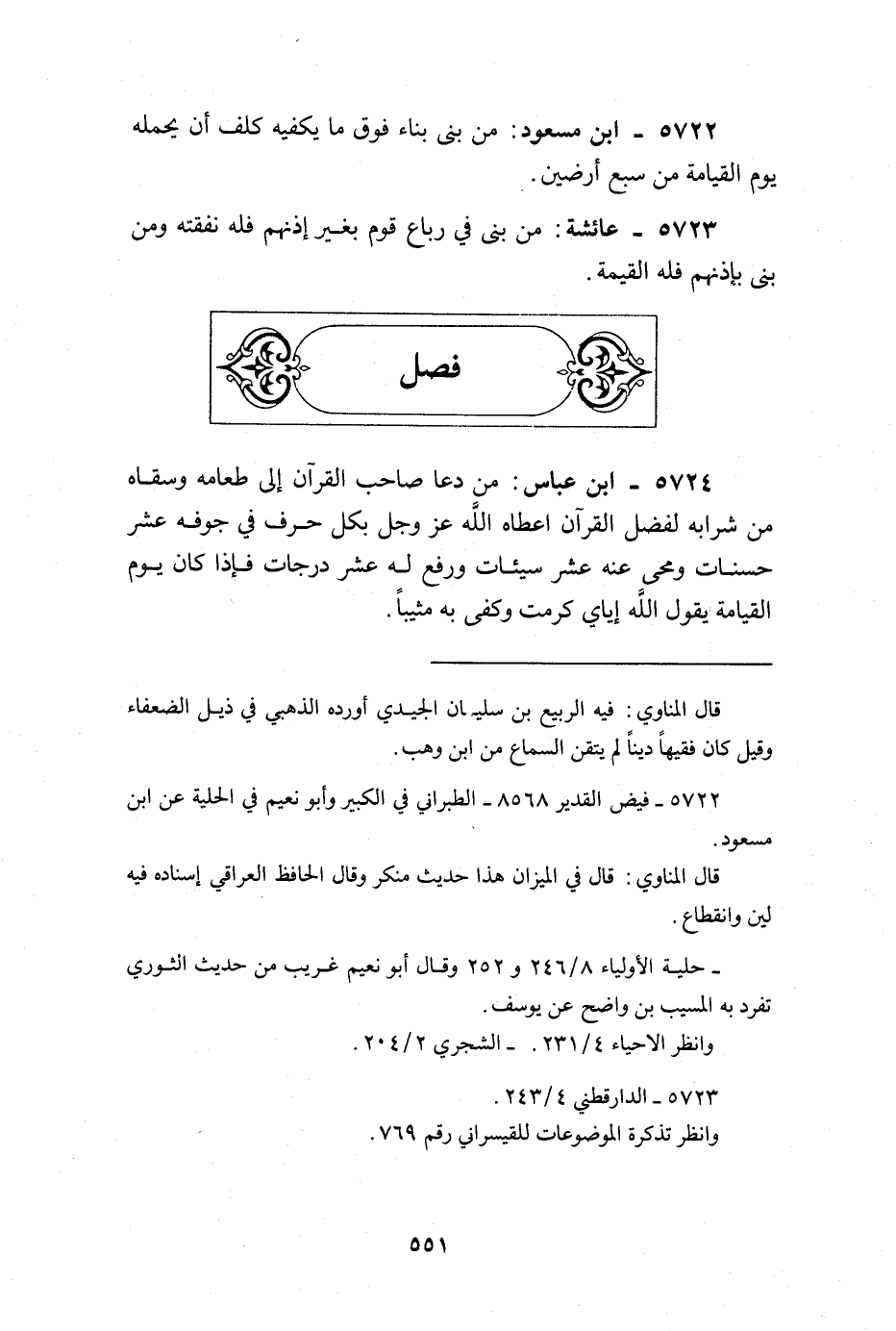 من دَعَا صَاحب الْقُرْآن إِلَى طَعَامه وسقاه من شرابه لفضل الْقُرْآن اعطاه الله عز وَجل بِكُل حرف فِي جَوْفه عشر حَسَنَات ومحى عَنهُ عشر سيئات وَرفع لَهُ عشر دَرَجَات فَإِذا كَانَ يَوْم الْقِيَامَة يَقُول الله إيَّايَ كرمت وَكفى بِهِ مثيبا